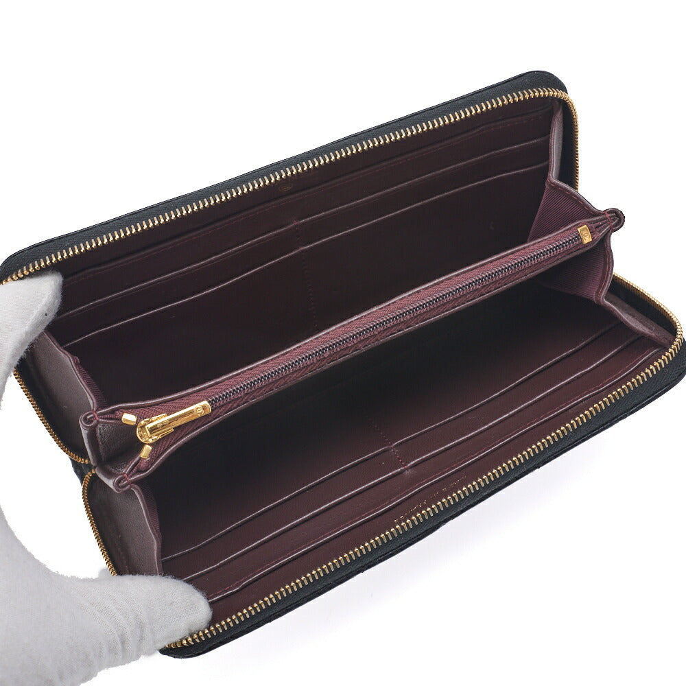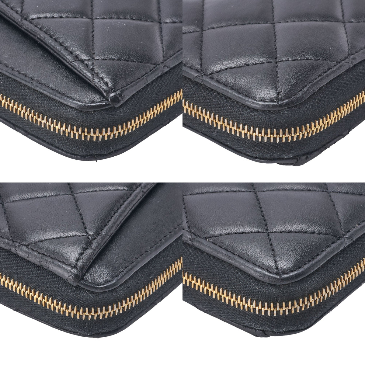 Pre-Owned Runde Lange Geldbörse Matelassé Lammleder Schwarz Goldfarbene Hardware Pre-Owned