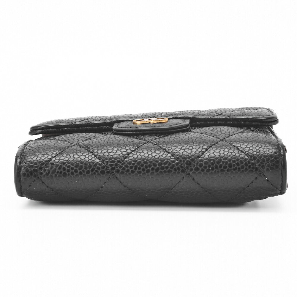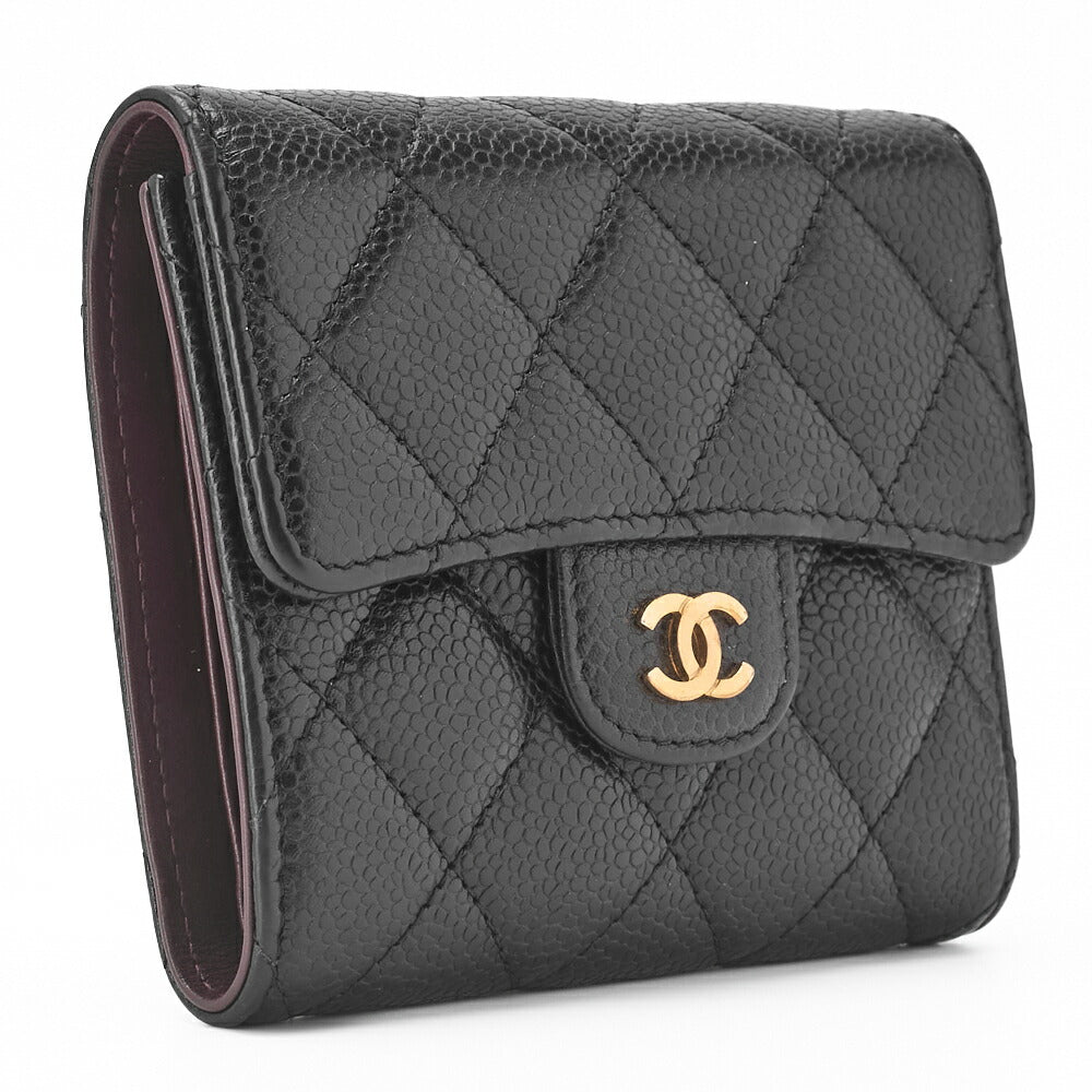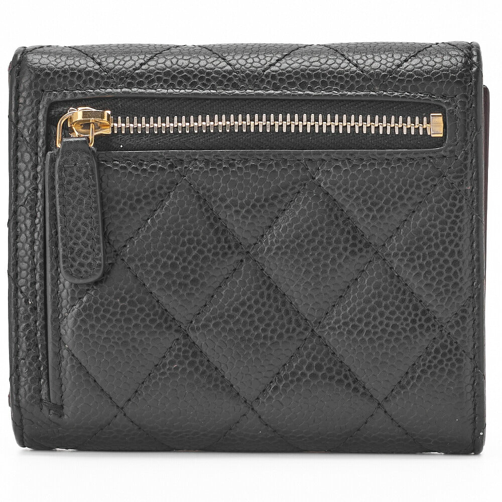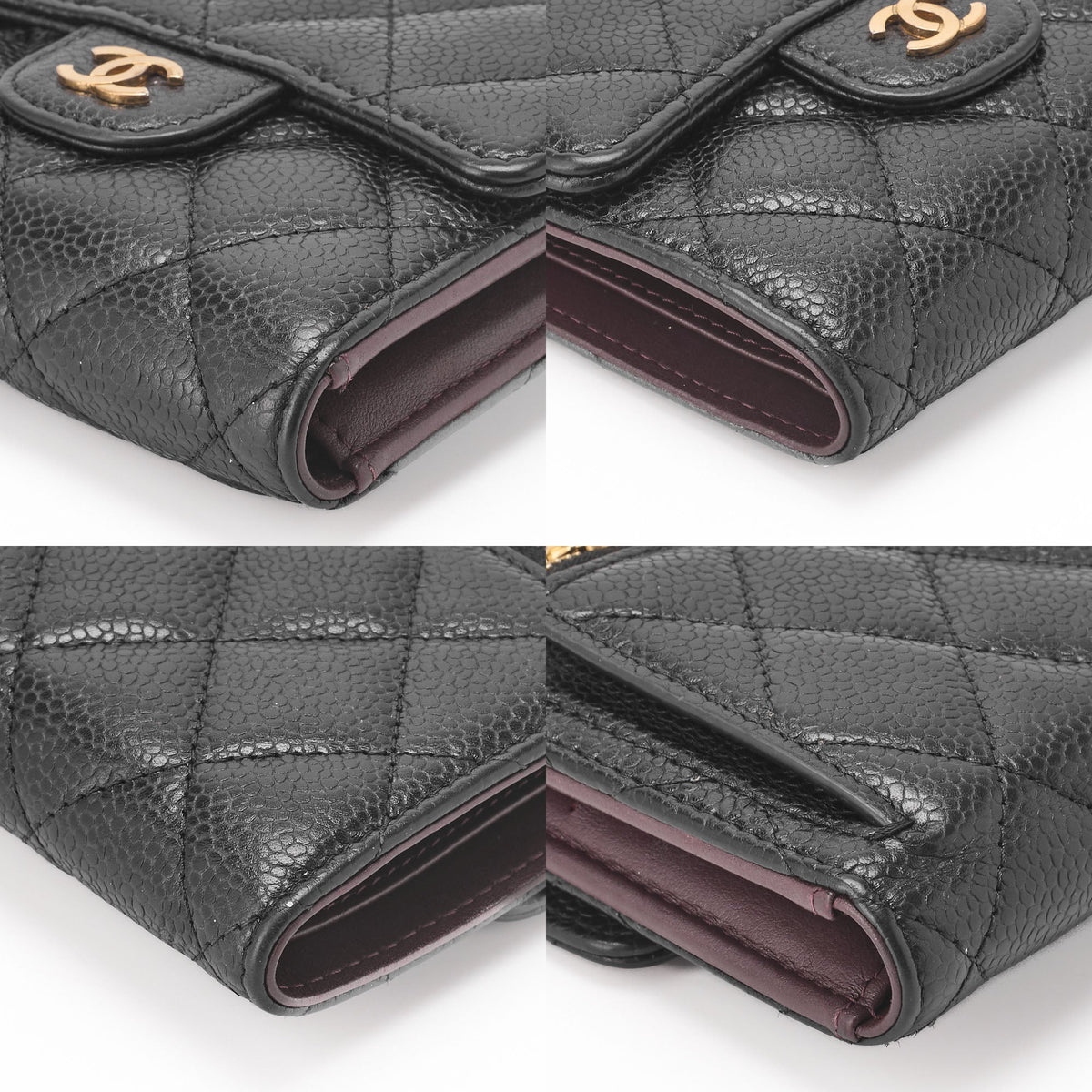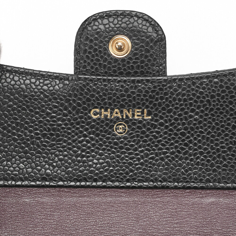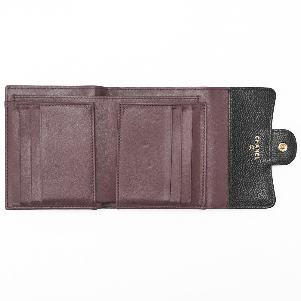 Erweitern Sie Ihre Accessoire-Auswahl mit der CHANEL Matelassé Tri-Fold Compact Wallet aus luxuriösem Kaviarleder in zeitlosem Schwarz. Diese exquisite Damenbrieftasche ist nicht nur ein modisches Statement, sondern auch ein Beweis für Eleganz und Funktionalität.