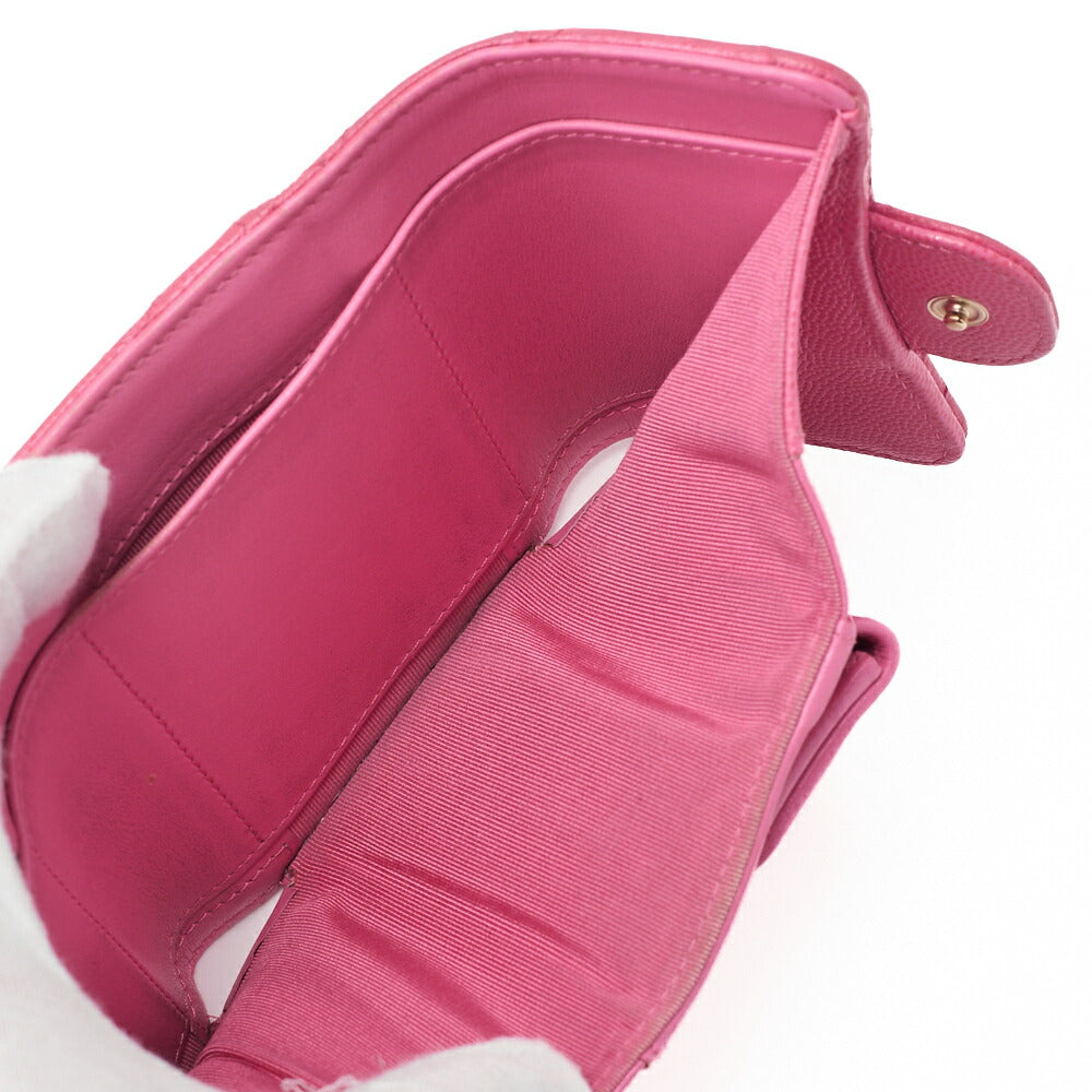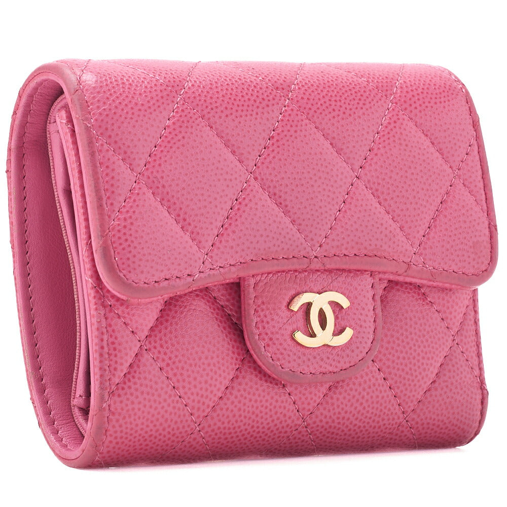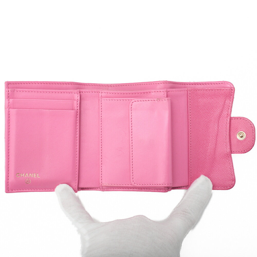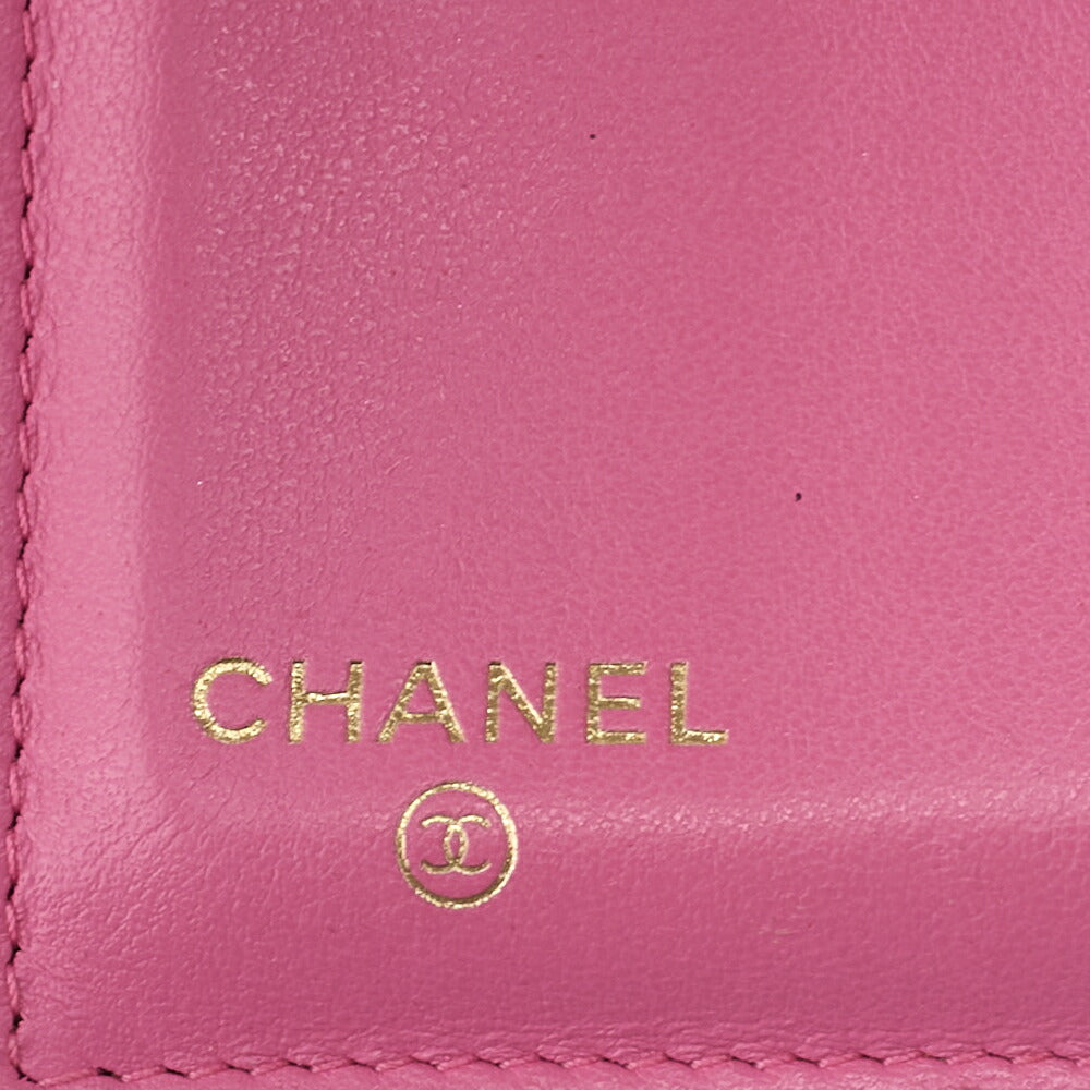 Wir präsentieren die exquisite CHANEL Matelassé Tri-fold Compact Wallet , ein luxuriöses Accessoire aus hochwertigem Kaviarleder in einem atemberaubenden Pinkton , elegant akzentuiert durch goldene Beschläge . Diese gebrauchte Damenbrieftasche vereint mühelos Stil und Funktionalität und ist damit die perfekte Ergänzung für Ihre Sammlung. Mit Abmessungen von ca. 10,5 cm (B) x 9 cm (H) ist sie kompakt und dennoch geräumig genug für alles Wichtige.