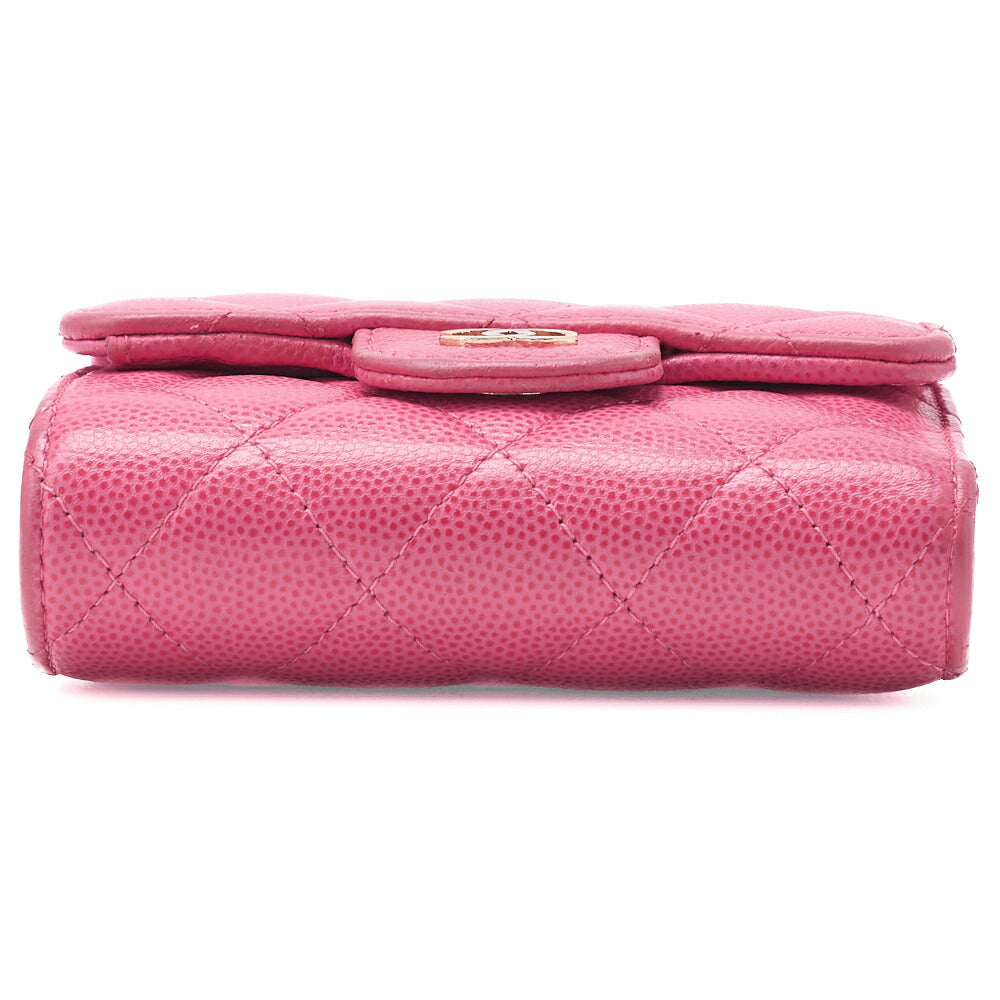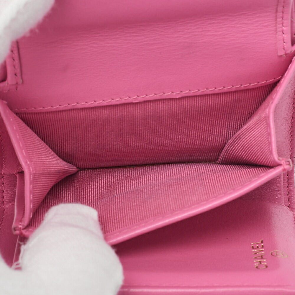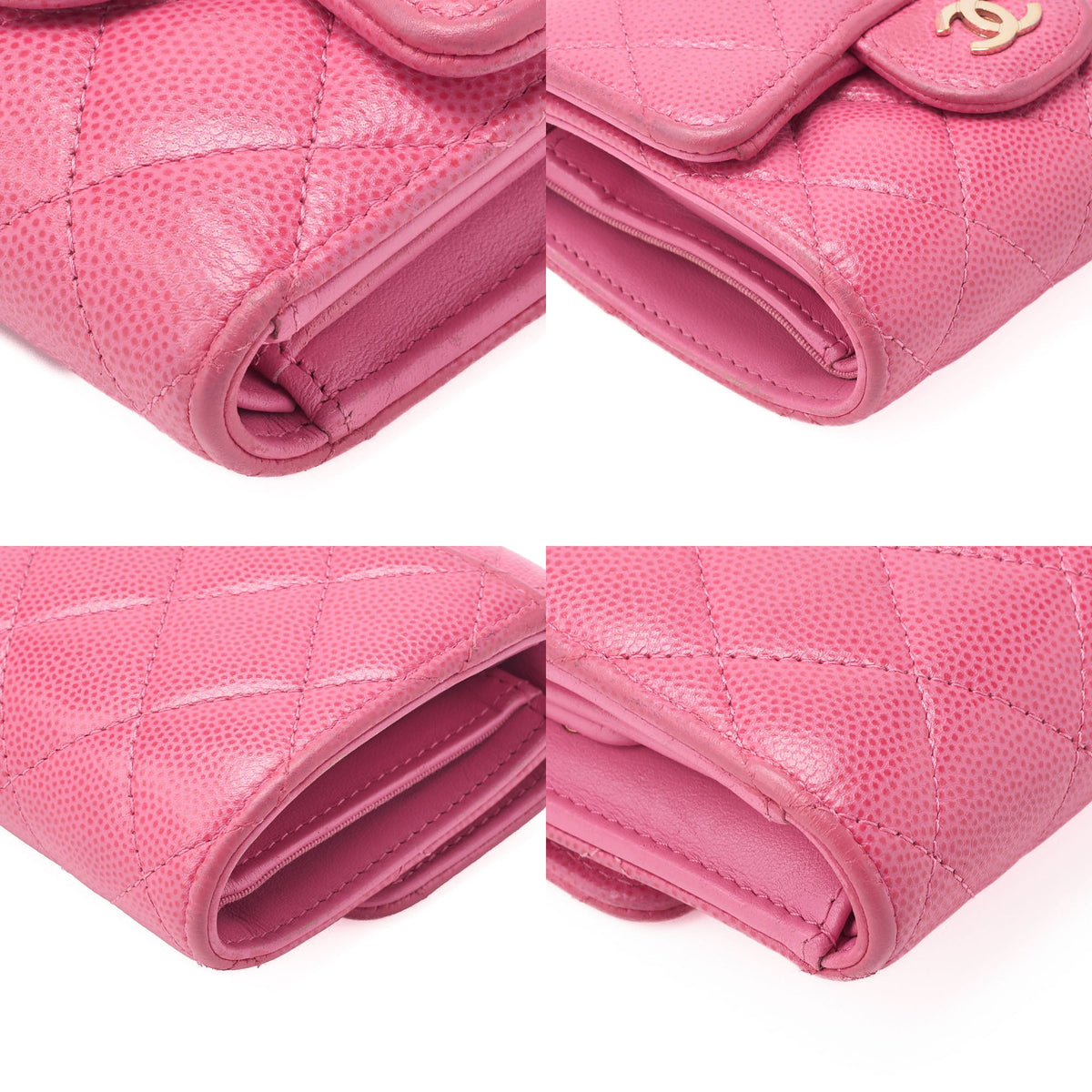 Wir präsentieren die exquisite CHANEL Matelassé Tri-fold Compact Wallet , ein luxuriöses Accessoire aus hochwertigem Kaviarleder in einem atemberaubenden Pinkton , elegant akzentuiert durch goldene Beschläge . Diese gebrauchte Damenbrieftasche vereint mühelos Stil und Funktionalität und ist damit die perfekte Ergänzung für Ihre Sammlung. Mit Abmessungen von ca. 10,5 cm (B) x 9 cm (H) ist sie kompakt und dennoch geräumig genug für alles Wichtige.