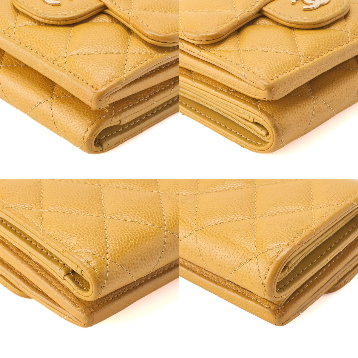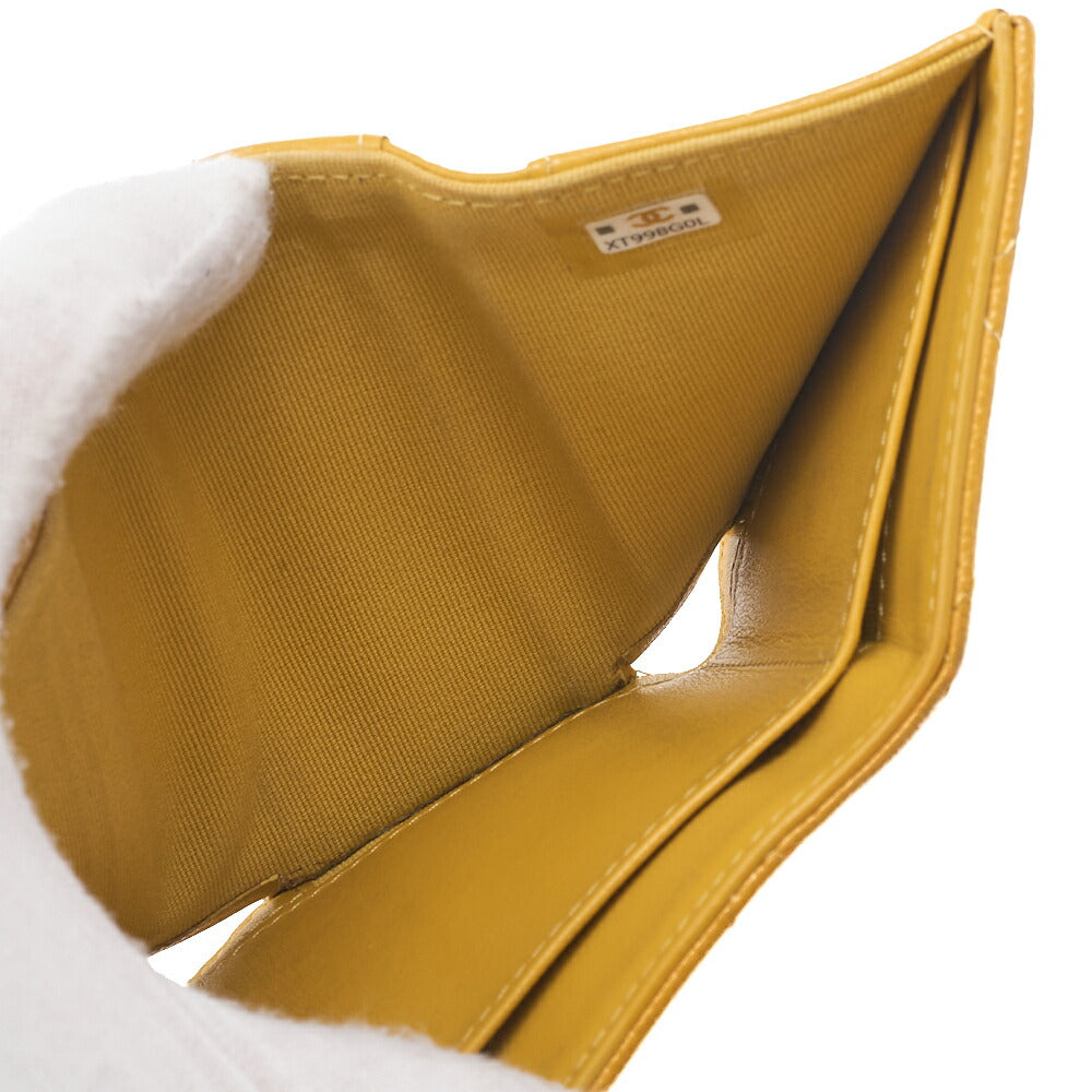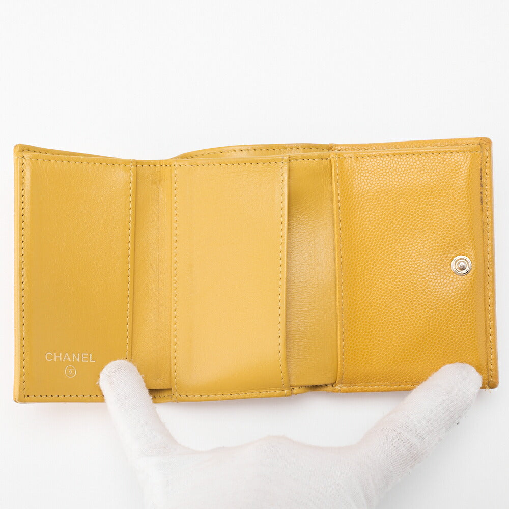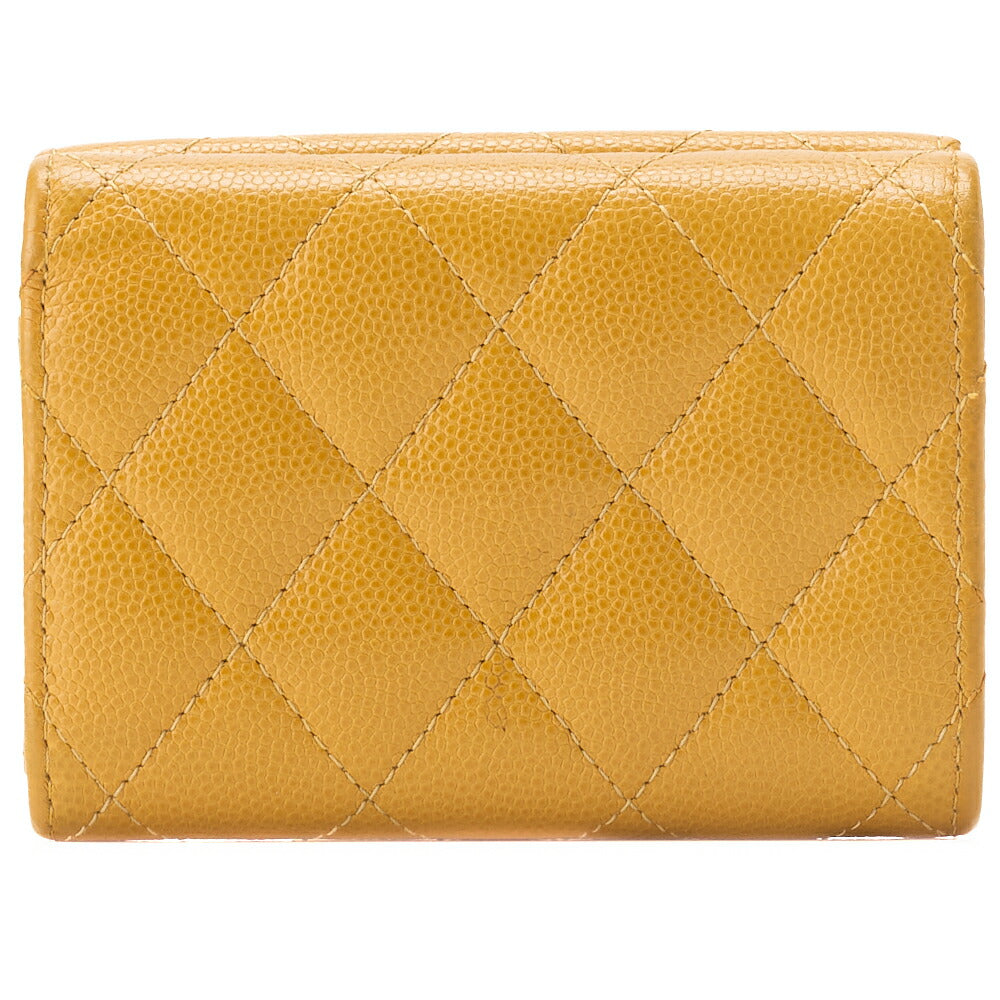 Entdecken Sie zeitlose Eleganz mit der CHANEL Matelassé Tri-Fold Compact Wallet aus luxuriösem Caviar Skin in einem atemberaubenden Gelbton mit goldenen Beschlägen. Diese exquisite Damenbrieftasche vereint Stil und Funktionalität und ist ein Must-have für modebewusste Damen.