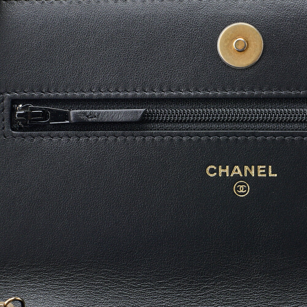 Veredeln Sie Ihren Stil mit der CHANEL Schultertasche „Chanel 19 Matelassé Chain Wallet“ . Dieses exquisite Stück ist aus luxuriösem Tweed in einer atemberaubenden Mischung aus Schwarz und Blau gefertigt, ergänzt durch elegante goldene und silberne Metallbeschläge . Entworfen für die moderne Frau, ist diese vielseitige Tasche ein Must-have für den Alltag und die Nacht.