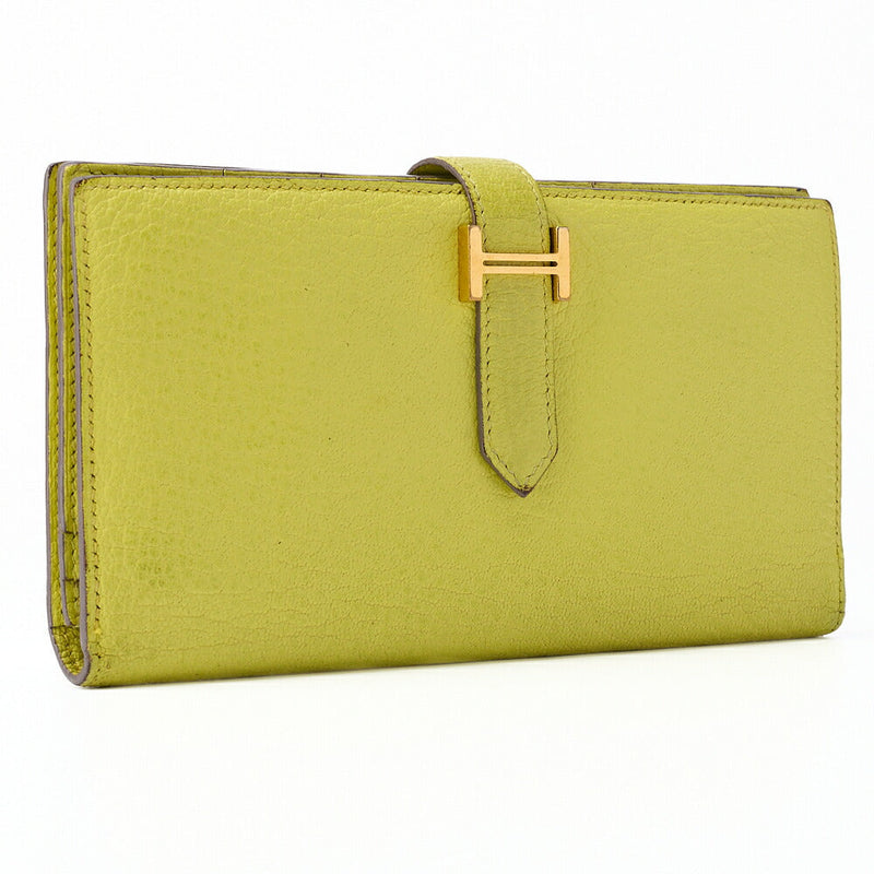 Bairn Classic Bi-Fold Long Wallet Chèvre Lime Gold-Tone Hardware Pre-Owned