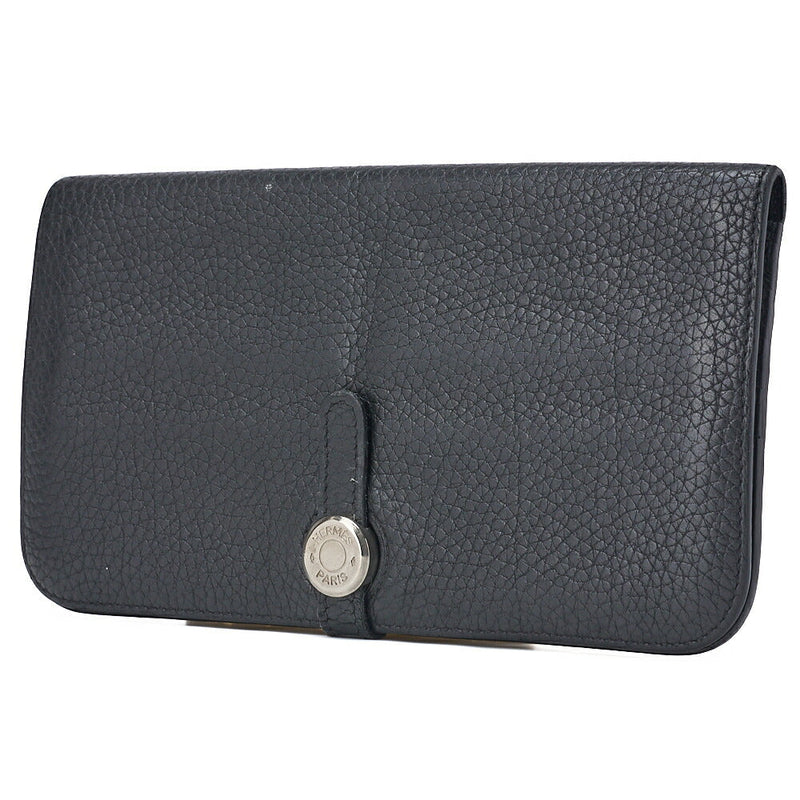 Gebrauchte Dogon Lange Zweifach-Geldbörse Togo Schwarz Silberfarbene Hardware Gebrauchte