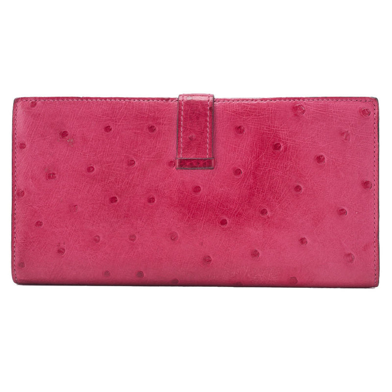 Gebrauchte Bearn Soufflet Zweifach-Geldbörse in Straußenrosa mit silberfarbenen Metallteilen