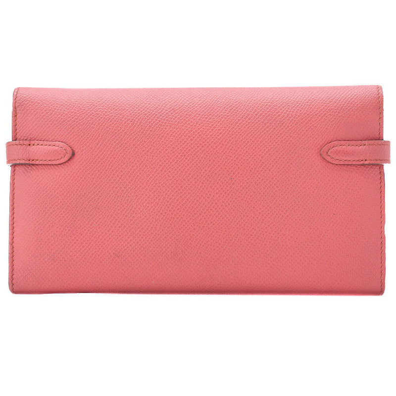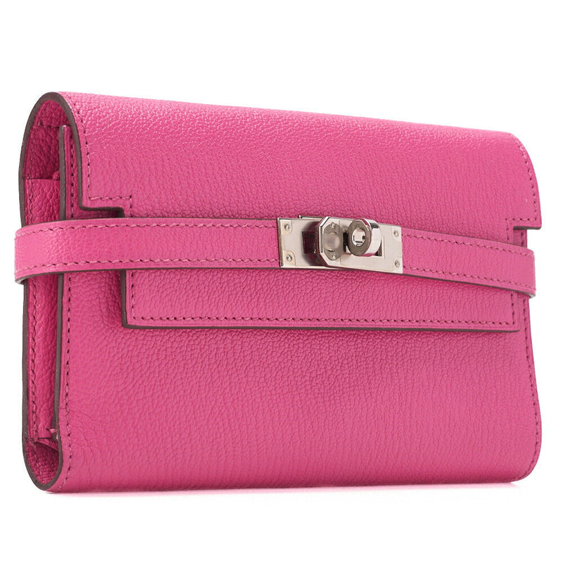 Gebrauchte Kelly Wallet Zweifach gefaltete lange Geldbörse Medium Chevrum Mizol Rose Tyrien Silberfarbene Hardware Gebrauchte