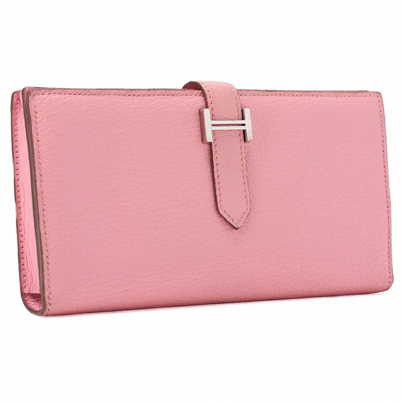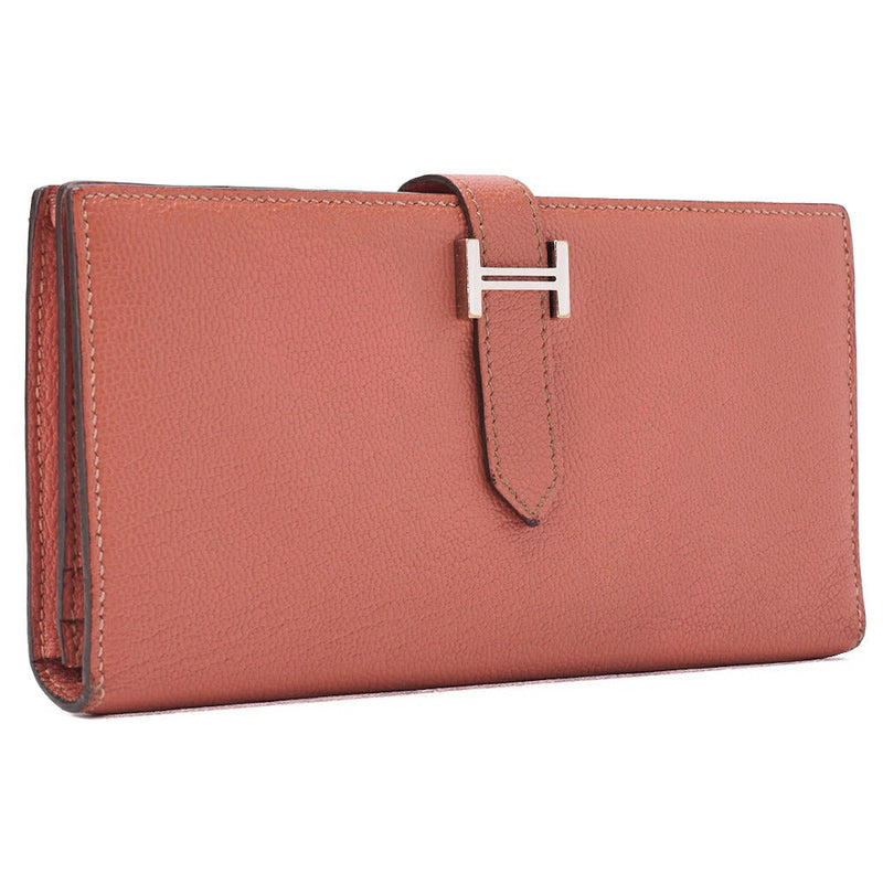 Bairn Classic Bi-fold Long Wallet Chèvre Crevette Pink Gold-Tone Hardware Pre-Owned