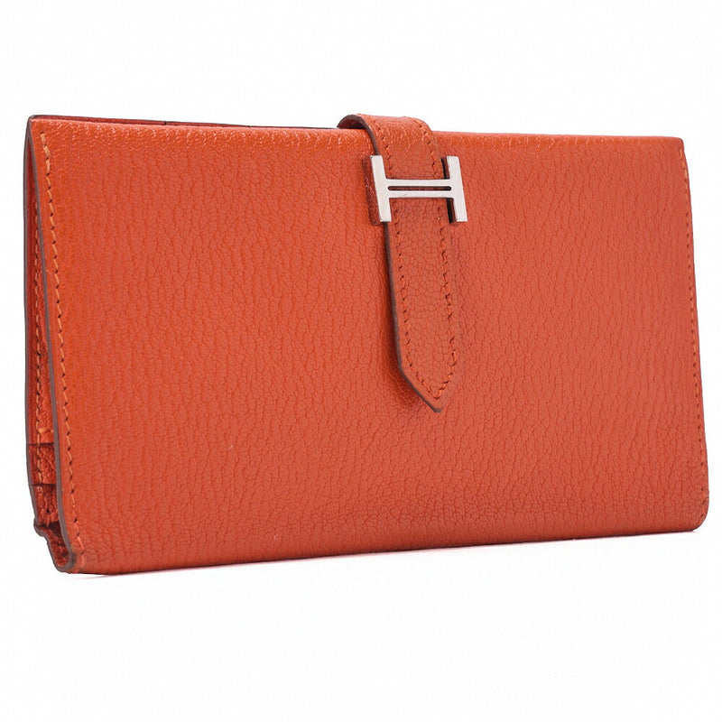 Gebrauchte Kelly Wallet 2 Fold Long Wallet Chevre Mizol Orange Silberfarbene Hardware Gebraucht