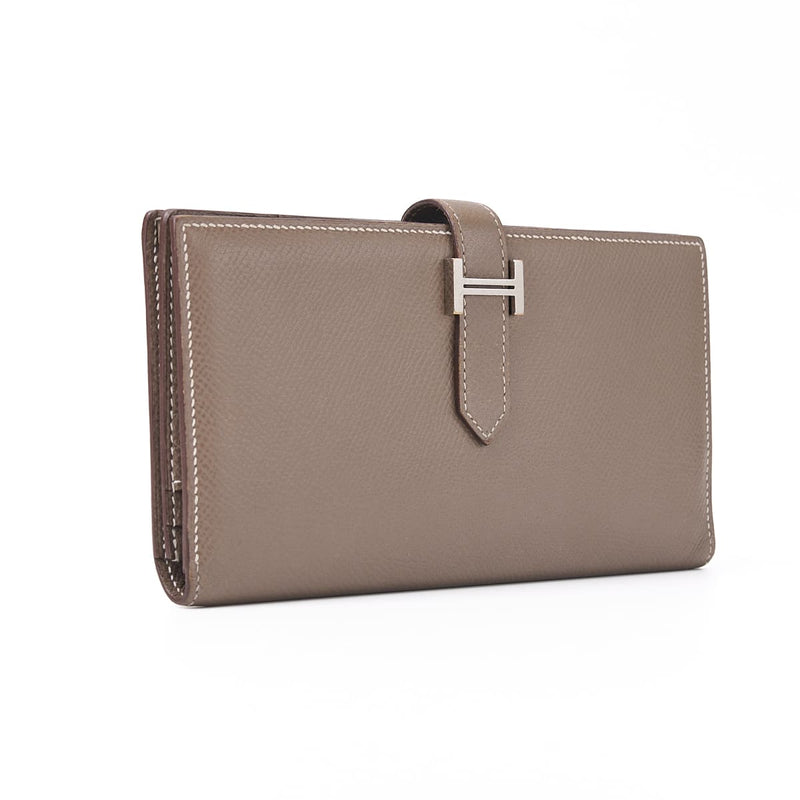 Gebrauchte Bearn Soufflet Zweifach-Geldbörse mit langem Griff Vaux Epson Etoupe Grau Silberfarbene Hardware Gebrauchte