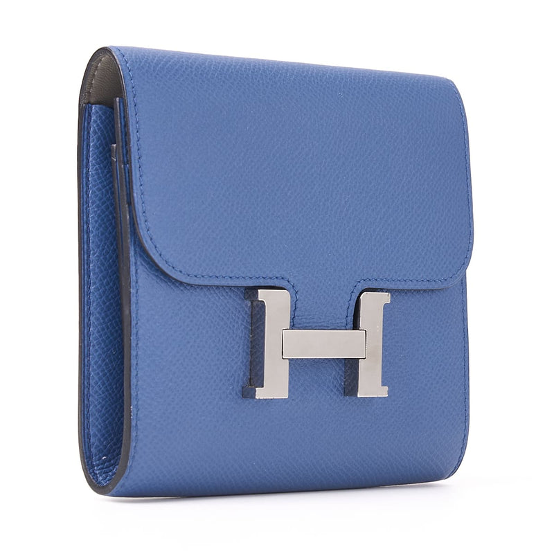 Gebrauchte Constance Compact Two-Fold Wallet Epson Leder Blau Izmir Silberfarbene Hardware Gebrauchte