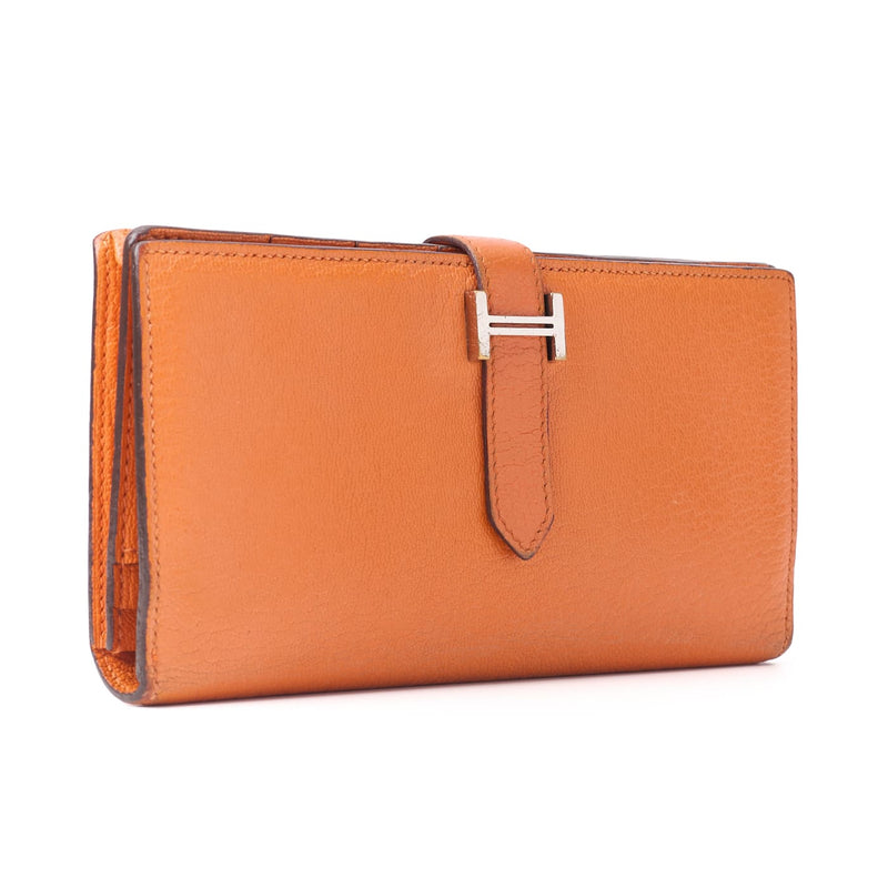 Bearn Soufflet Zweifach-Geldbörse, lang, Chevre Orange, silberfarbene Metallteile, gebraucht