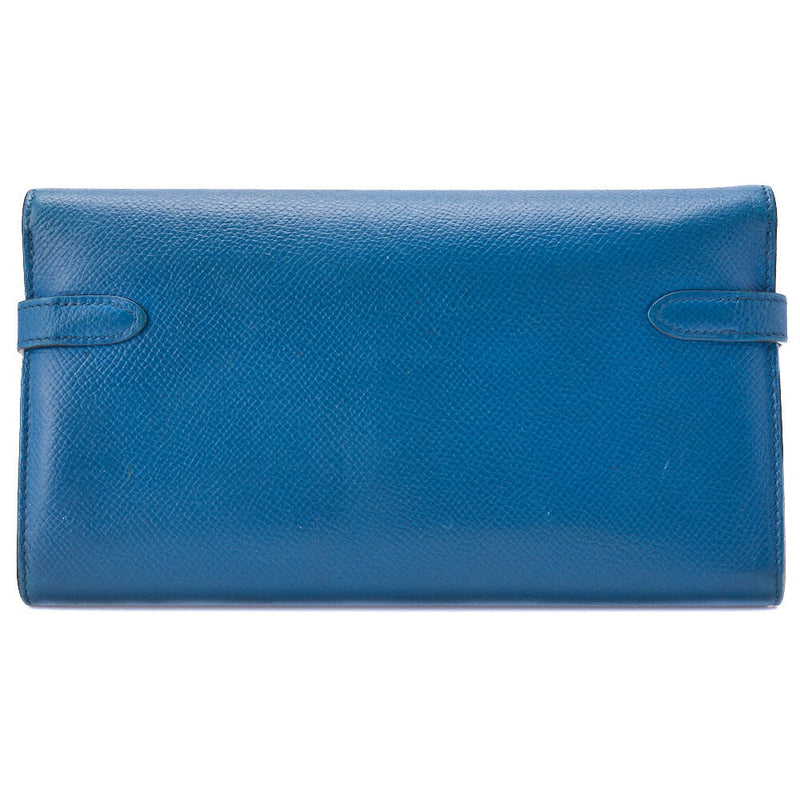 Gebrauchte Kelly Wallet 2 Fold Long Wallet Epson Leder Blau Ismir Silberfarbene Hardware Gebraucht