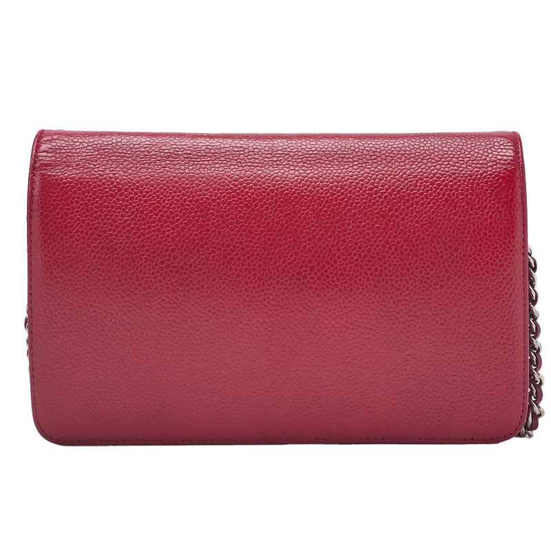 Pre-Owned Schultertasche Kette Geldbörse Caviar Skin Rot Silberfarbene Hardware Pre-Owned