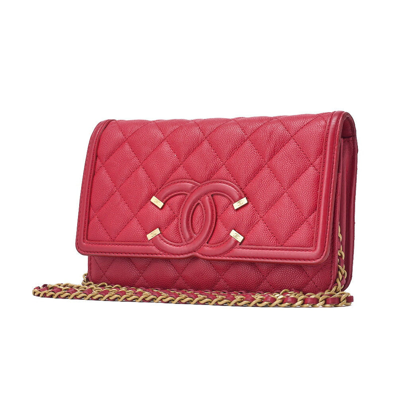 Pre-Owned Schultertasche Kette Geldbörse Matelassé Kaviar Haut Rot Gold-Ton Hardware Pre-Owned