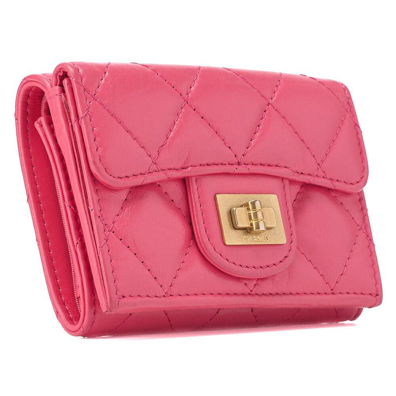 Gebrauchte dreifach faltbare kompakte Geldbörse Matelassé-Lammleder Pink-Gold-Ton-Hardware