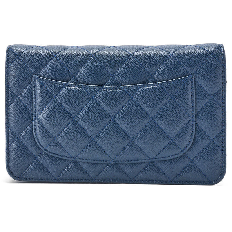Gebrauchte Geldbörse mit Kette, Matelassé, Kaviarhaut, Blau, Goldfarbene Metallteile, Gebraucht
