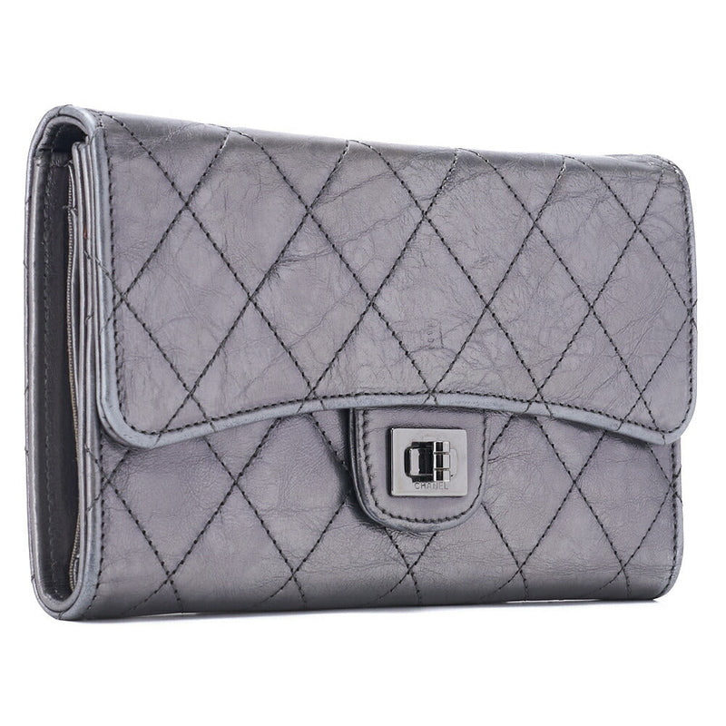 Gebrauchte dreifach faltbare Geldbörse, Matelassé, Vintage-Kalbsleder, Silber, silberfarbene Metallteile, gebraucht