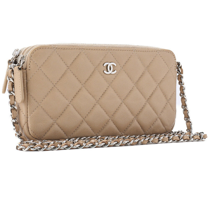 Pre-Owned Schultertasche Kette Geldbörse Matelassé Kaviar Haut Beige Silber-Ton Hardware Pre-Owned