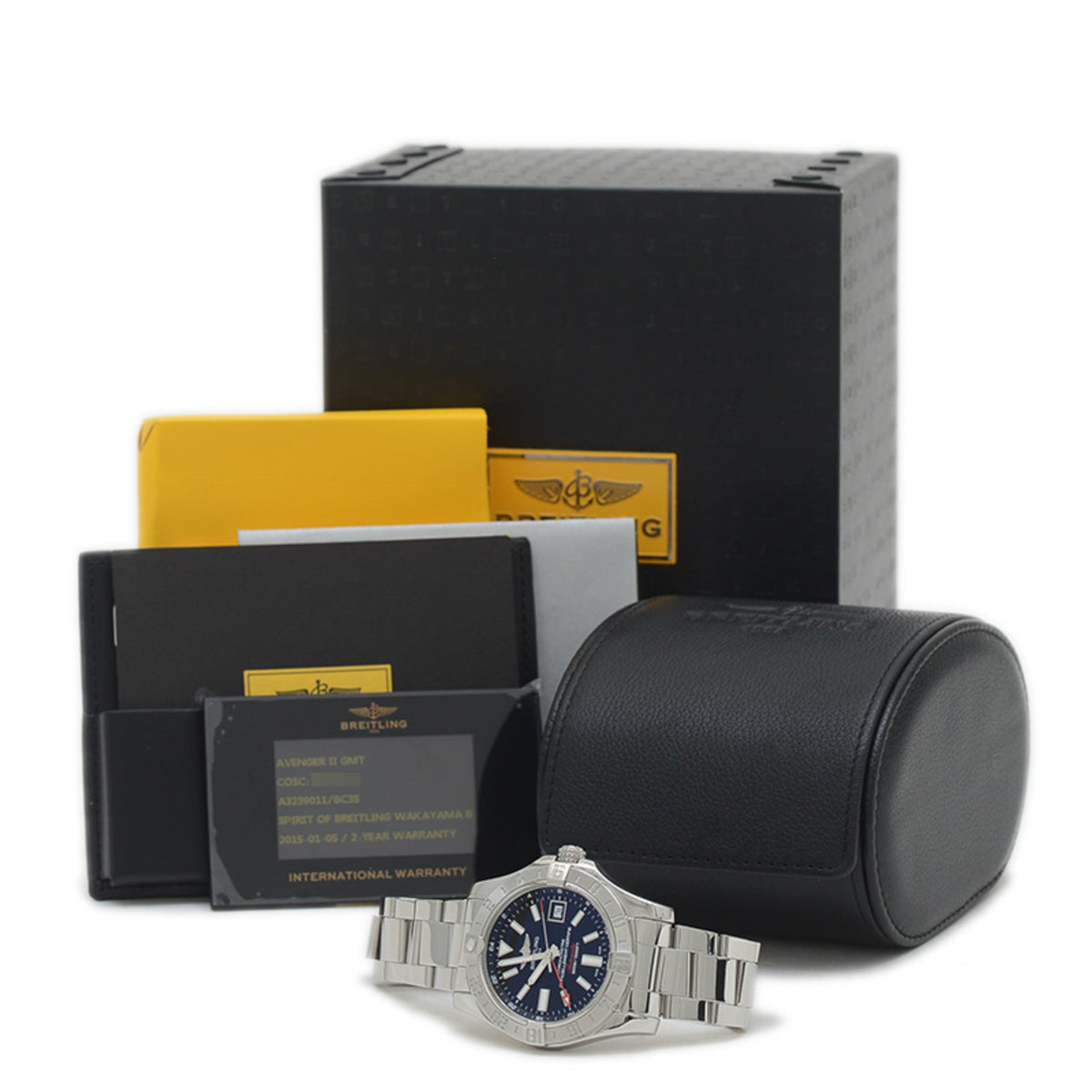 Pre-Owned Breitling Avenger II GMT Watch, Black Dial, Stainless Steel, Automatic, Men's, A32390