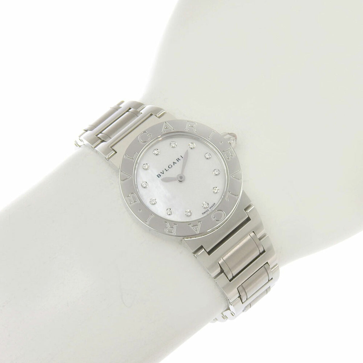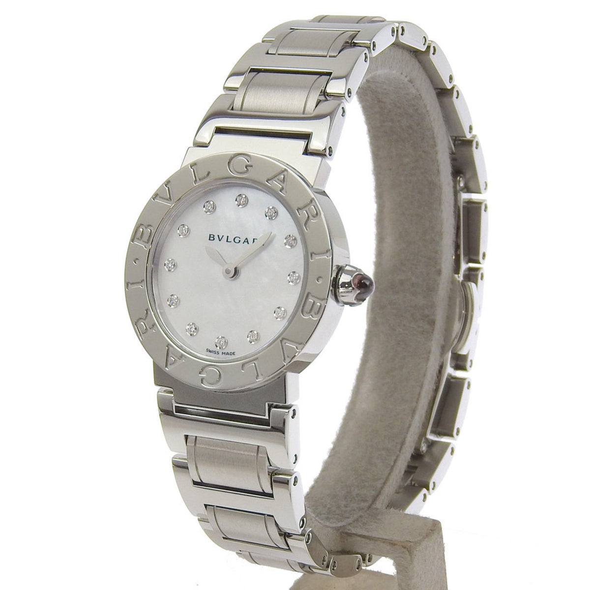 Gebrauchte BVLGARI BBL26S Weißes Muschelzifferblatt 12P Diamant SS Quarz Armbanduhr 26mm Damen
