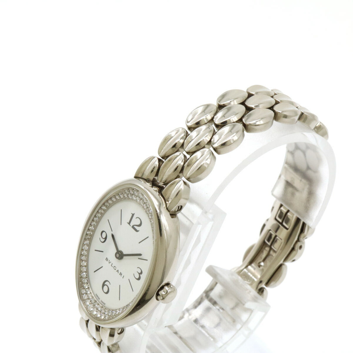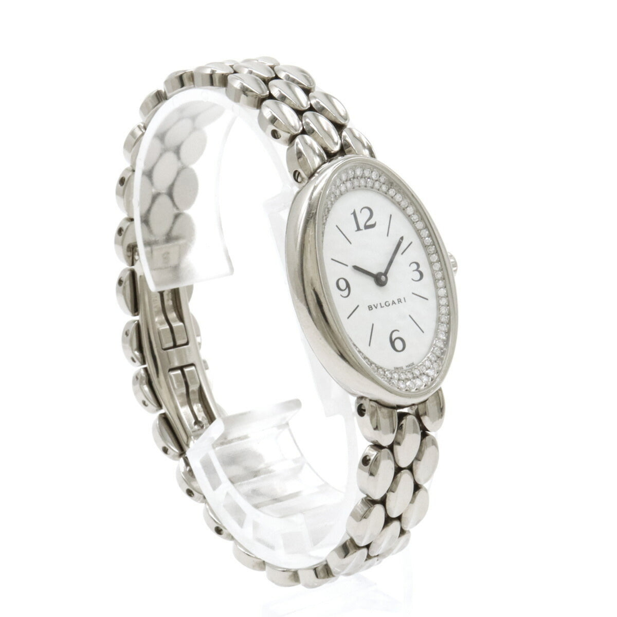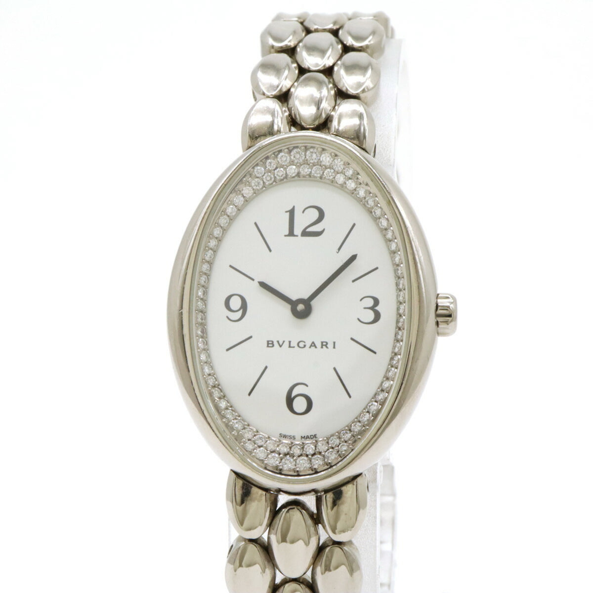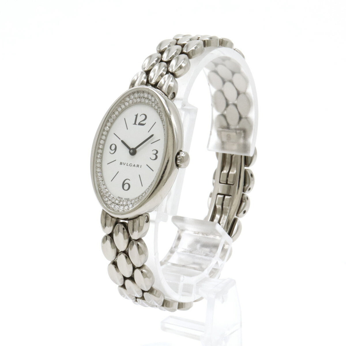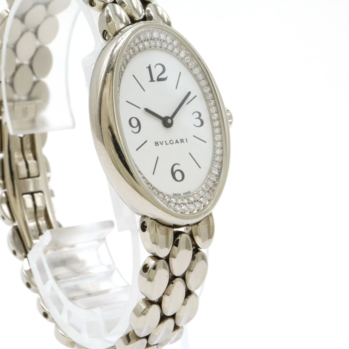 Gebrauchte BVLGARI Bvlgari Ovale Diamantlünette Weißes Zifferblatt K18 Massivgold 750WG Damen-Quarzuhr OVW32G