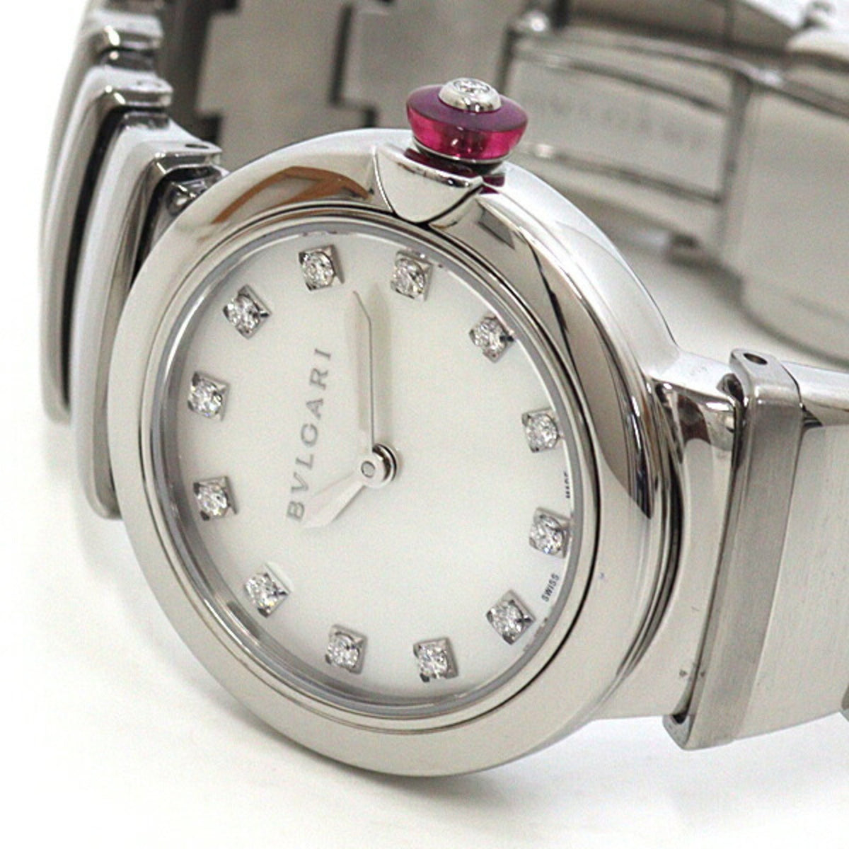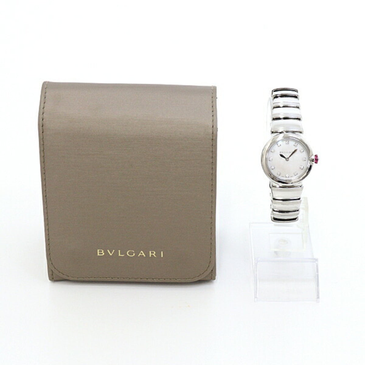 Gebrauchte BVLGARI Bvlgari Damenuhr Lucea LU28S Weißes Muschelzifferblatt Diamantquarz-Finish