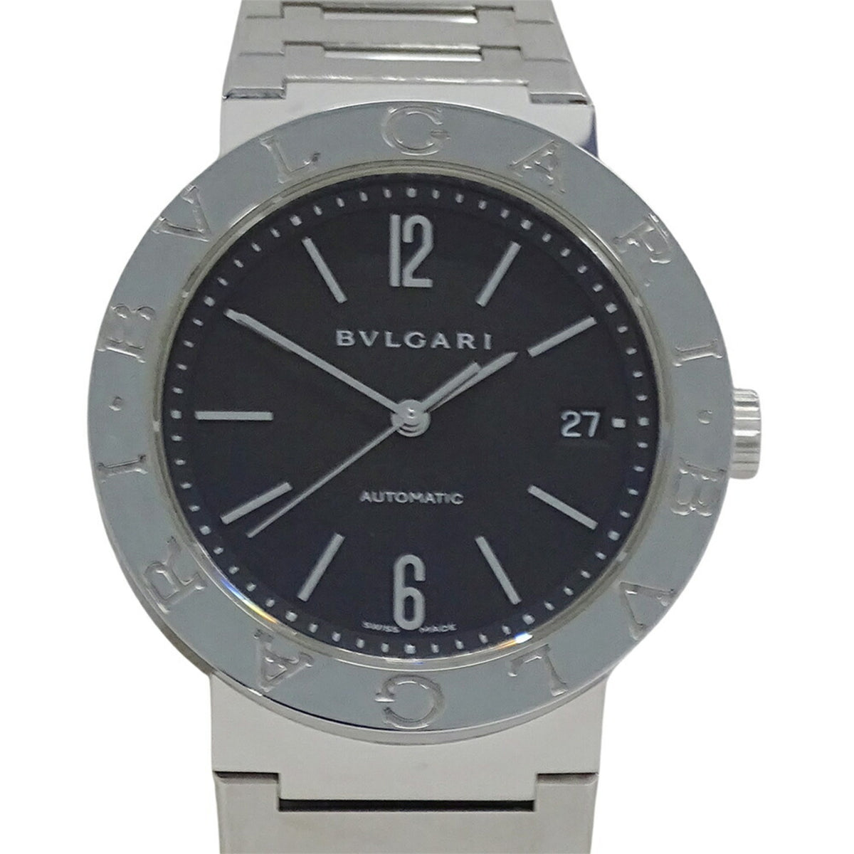 Pre-Owned BVLGARI Men's Date Automatic Watch, Stainless Steel, AT, SS, BB38SS, Silver/Black, Round, Polished