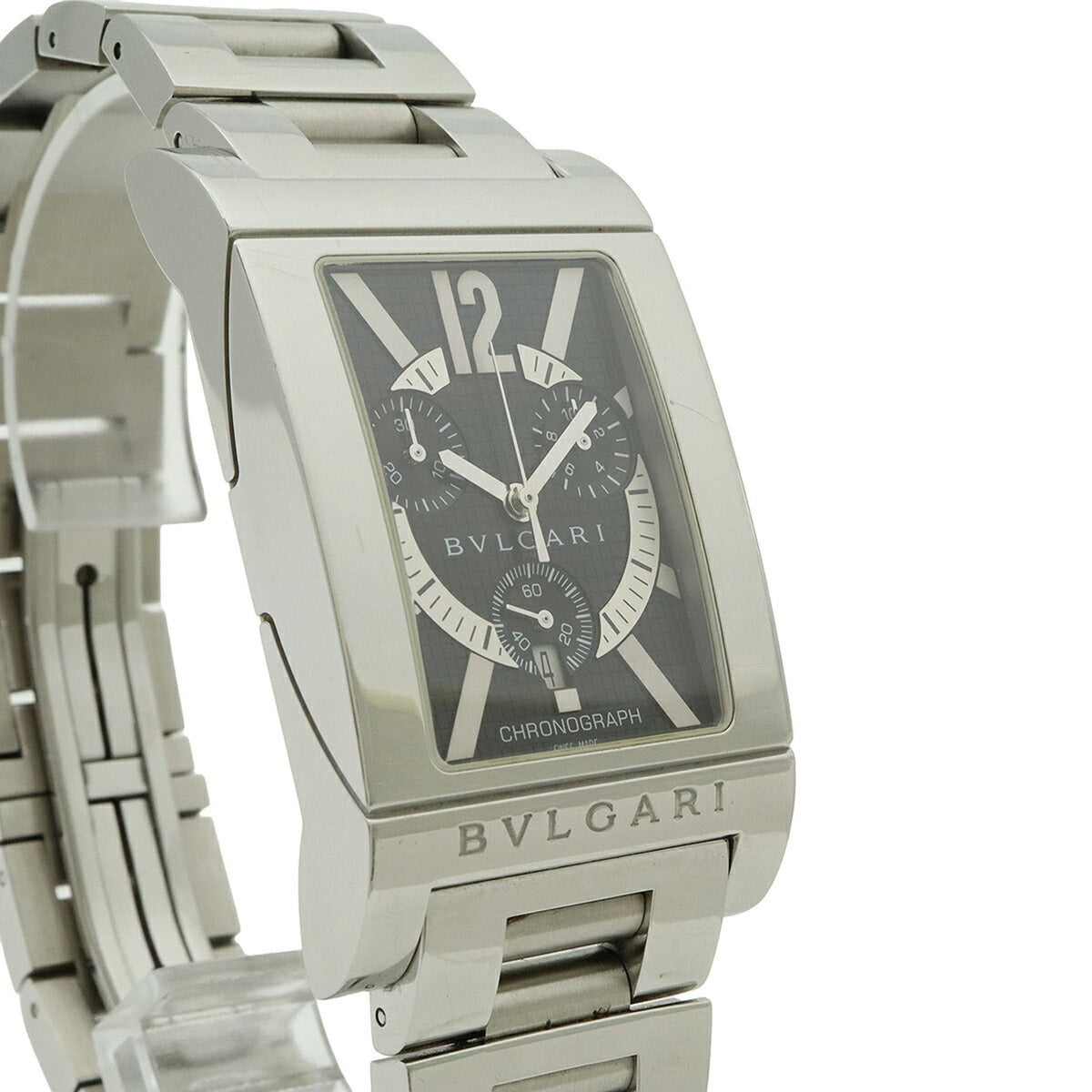 Pre-Owned BVLGARI Rettangolo Black Dial Stainless Steel Quartz Men's Watch RTC49S