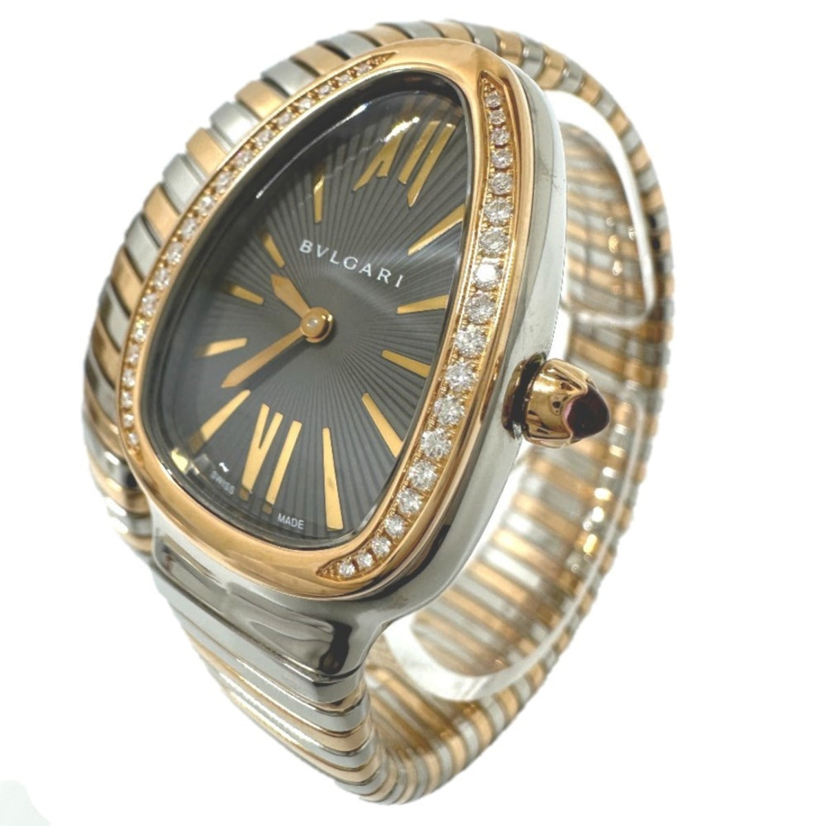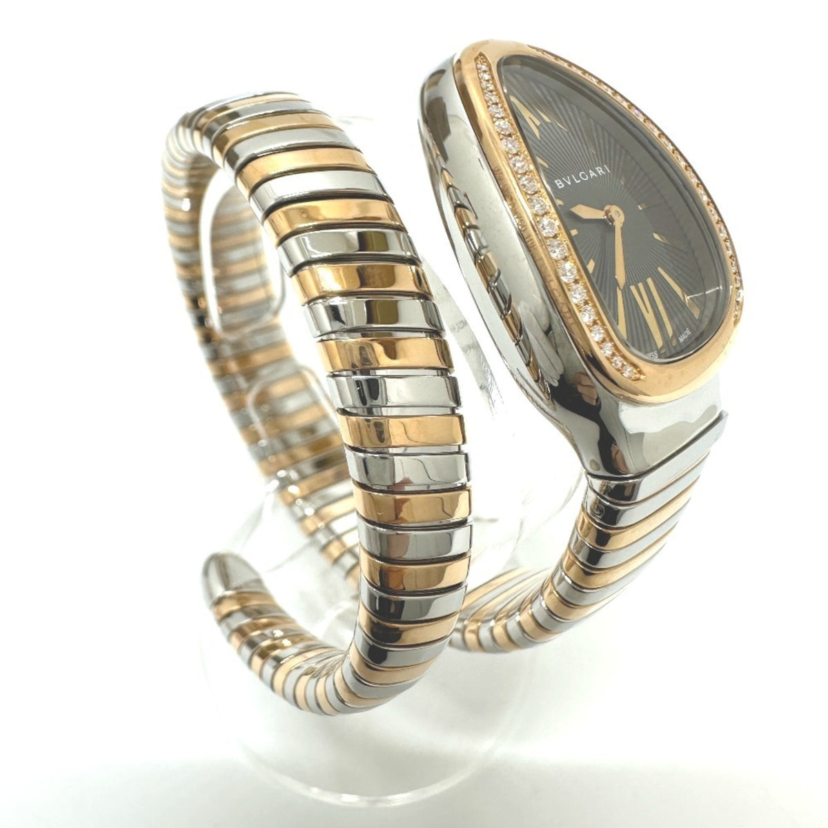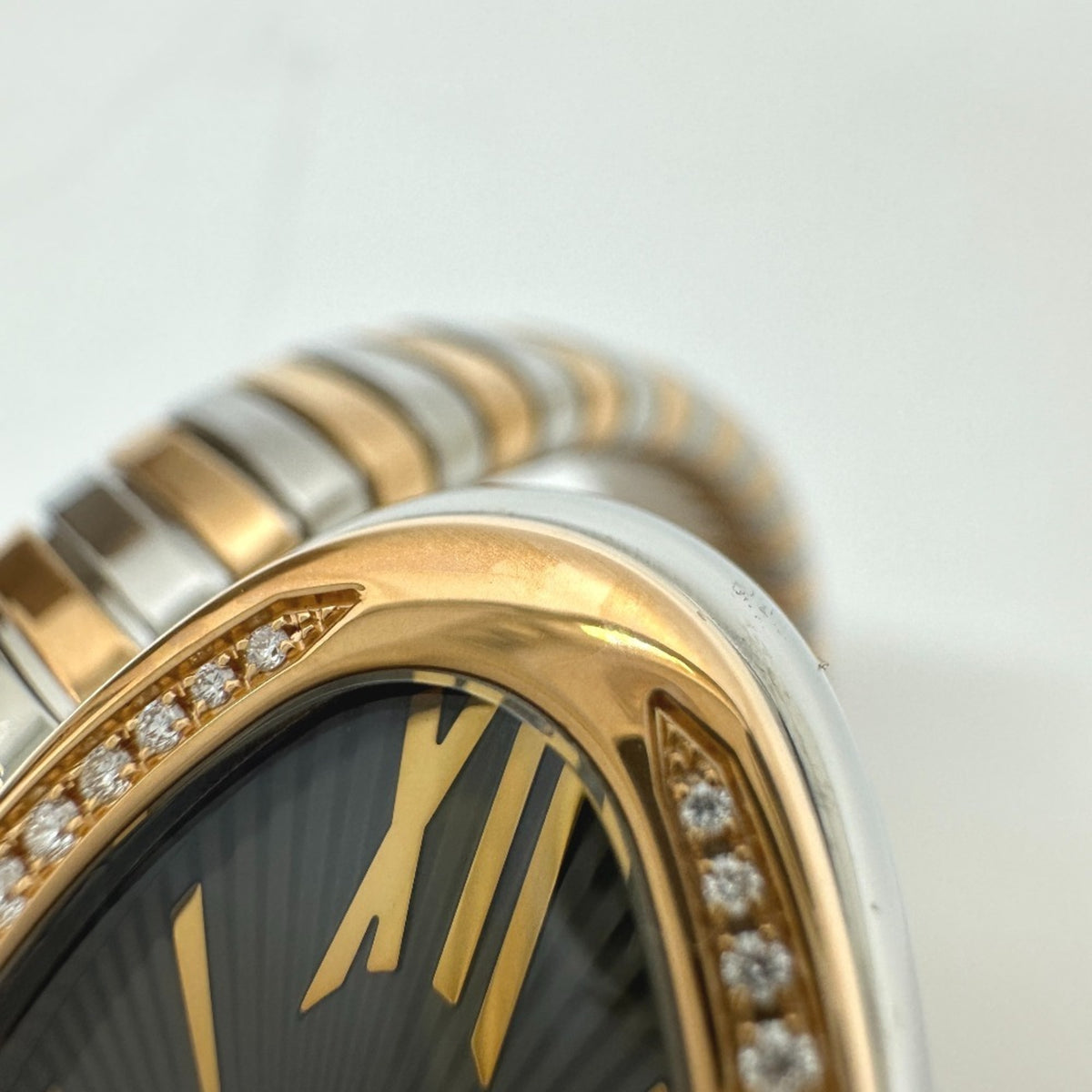 Gebrauchte BVLGARI SP35SPG Serpenti Tubogas Kombination Diamant Lünette Quarzuhr K18YG SS Damen Gold