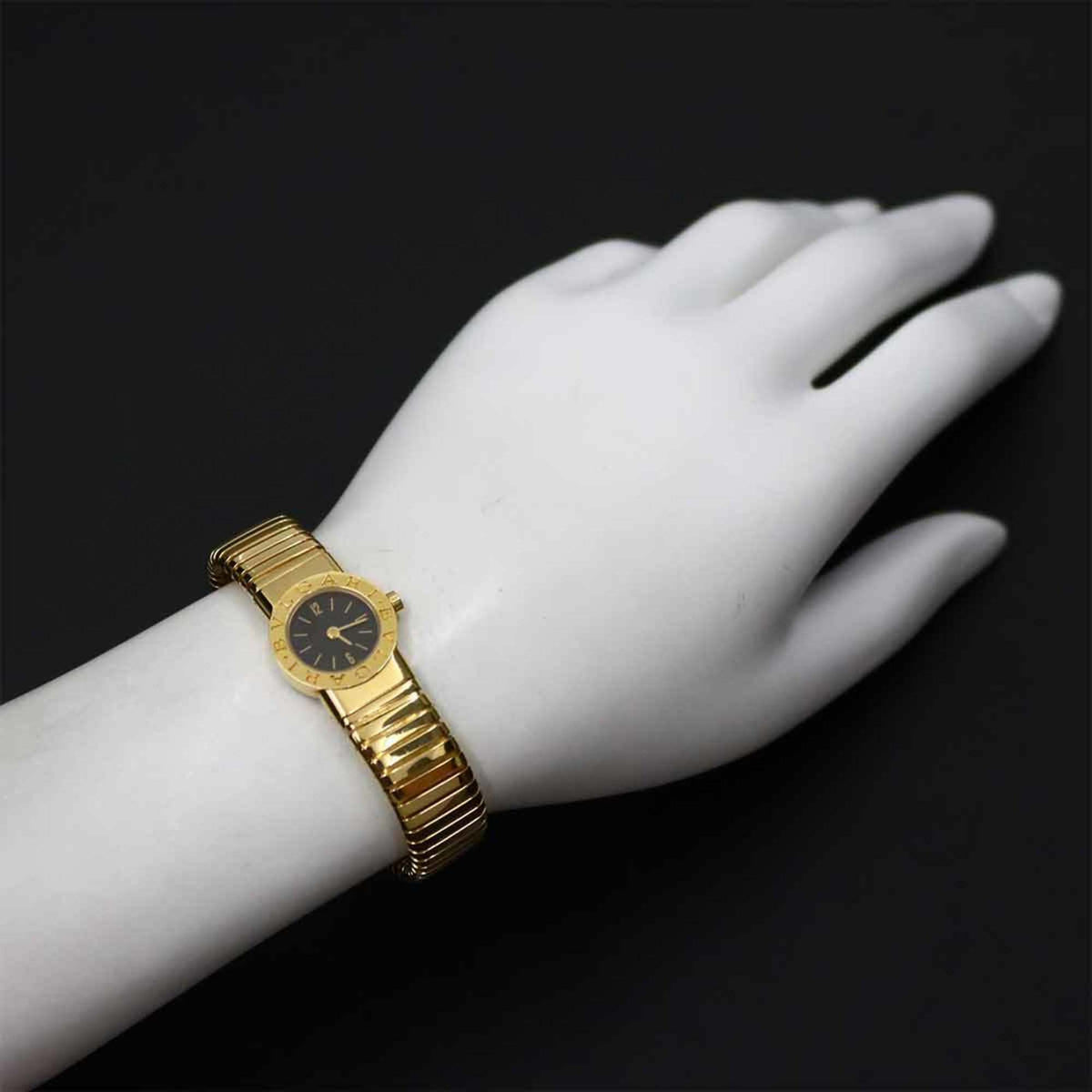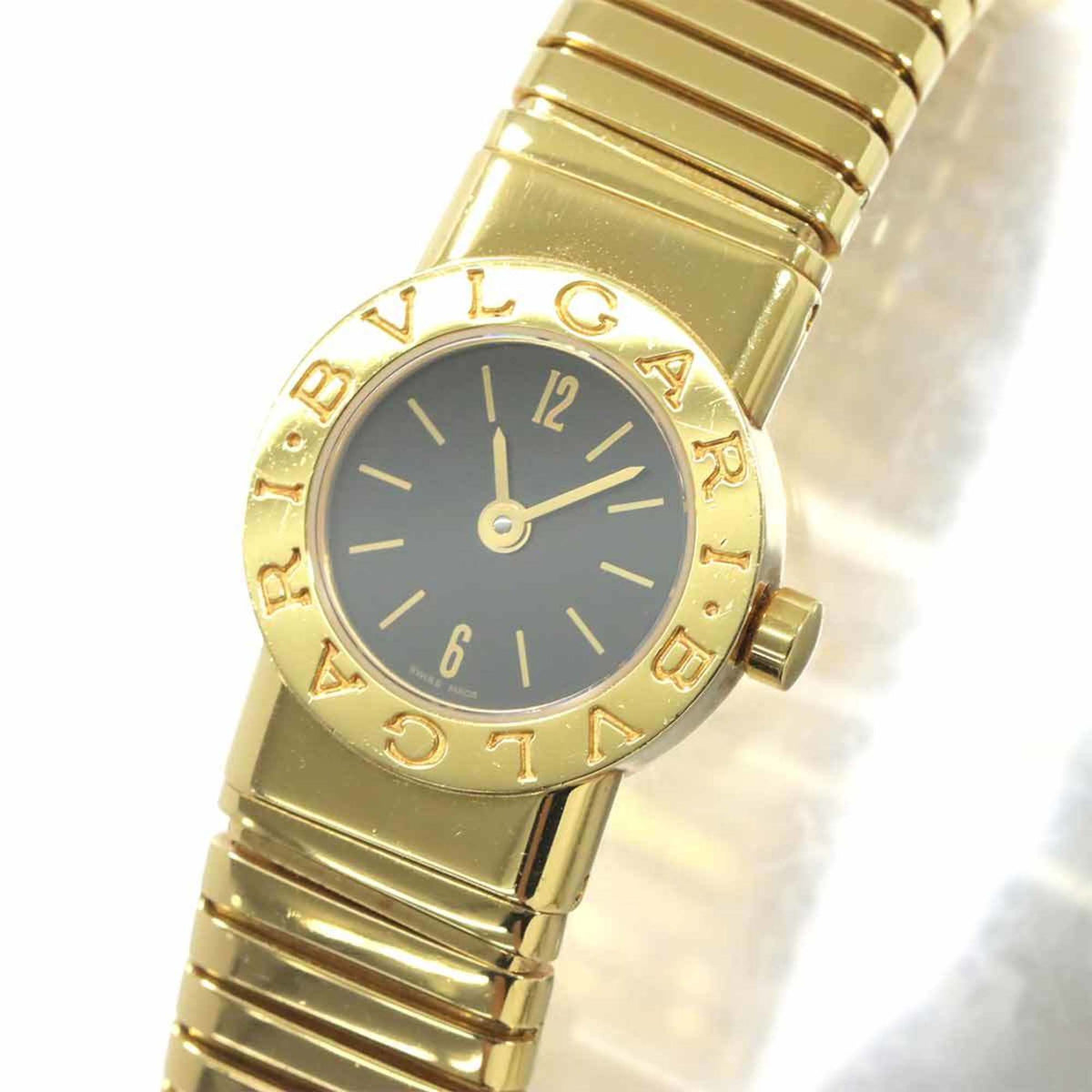 Pre-Owned BVLGARI Tubogas BB19 2TG Women's Watch in Black 18K Yellow Gold with Solid Quartz Movement