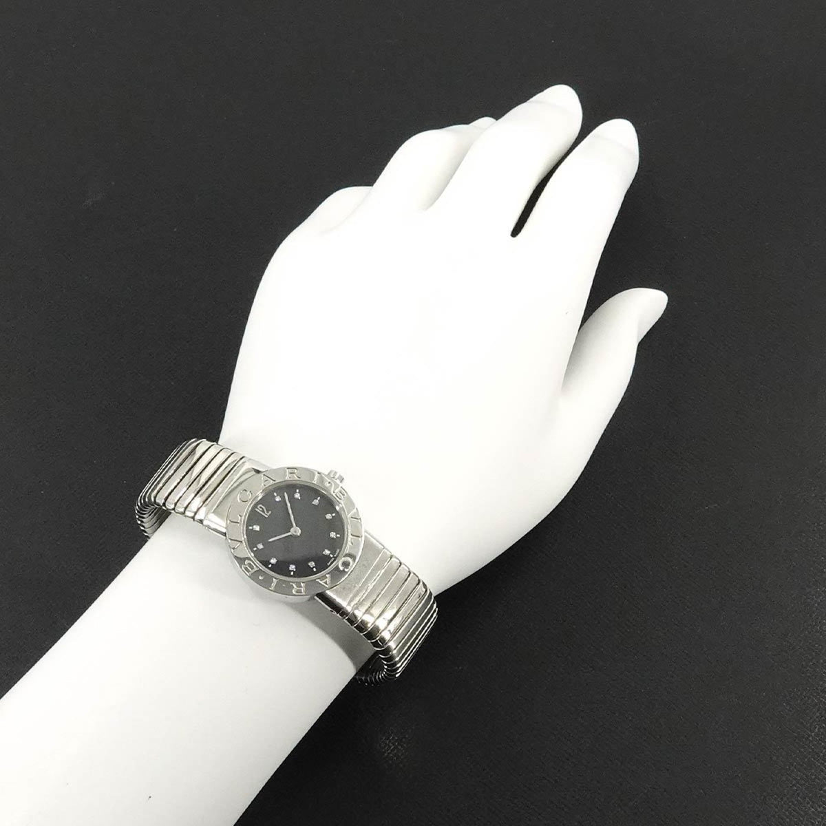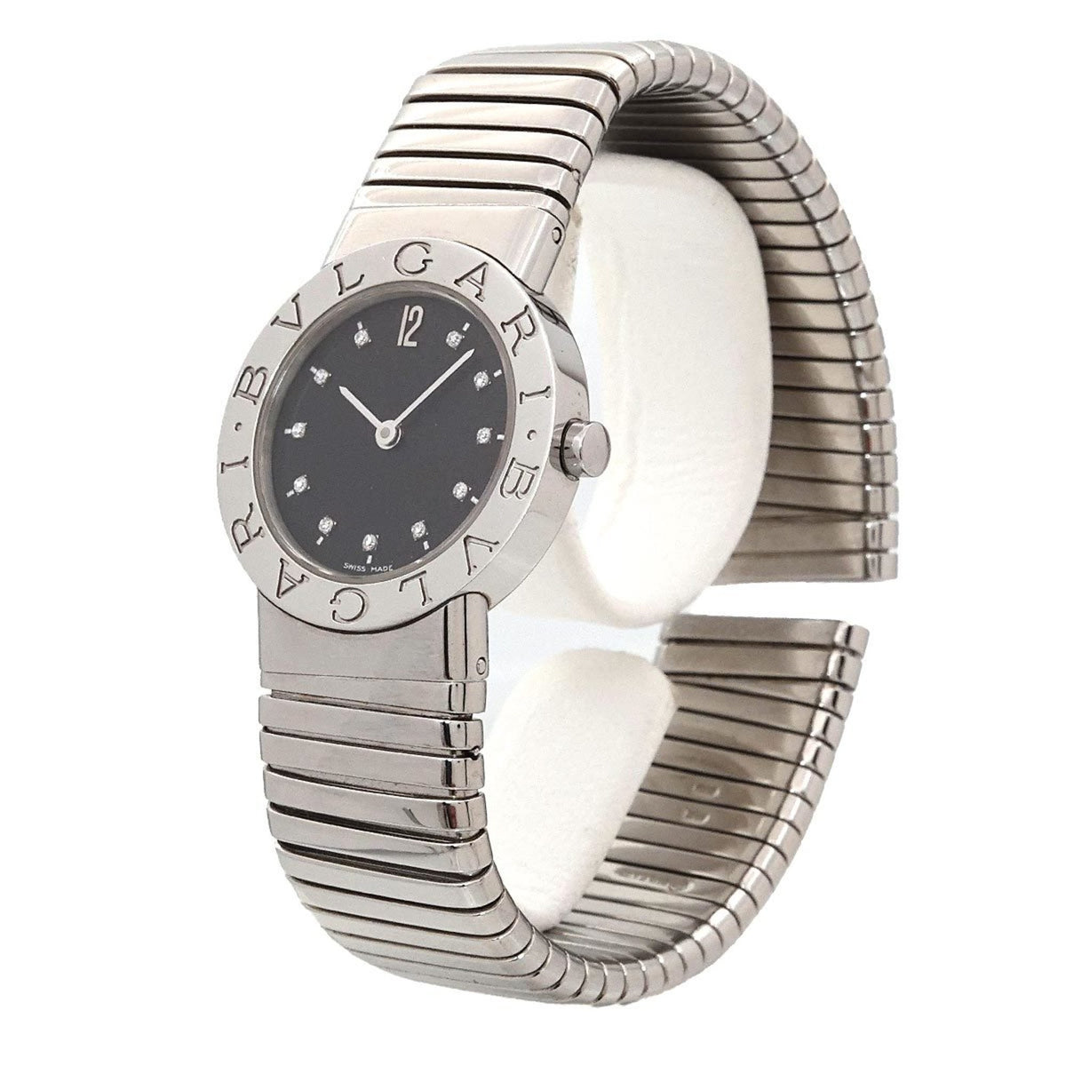 Pre-Owned BVLGARI Tubogas BB262TS 11P Diamond Women's Watch Black Quartz