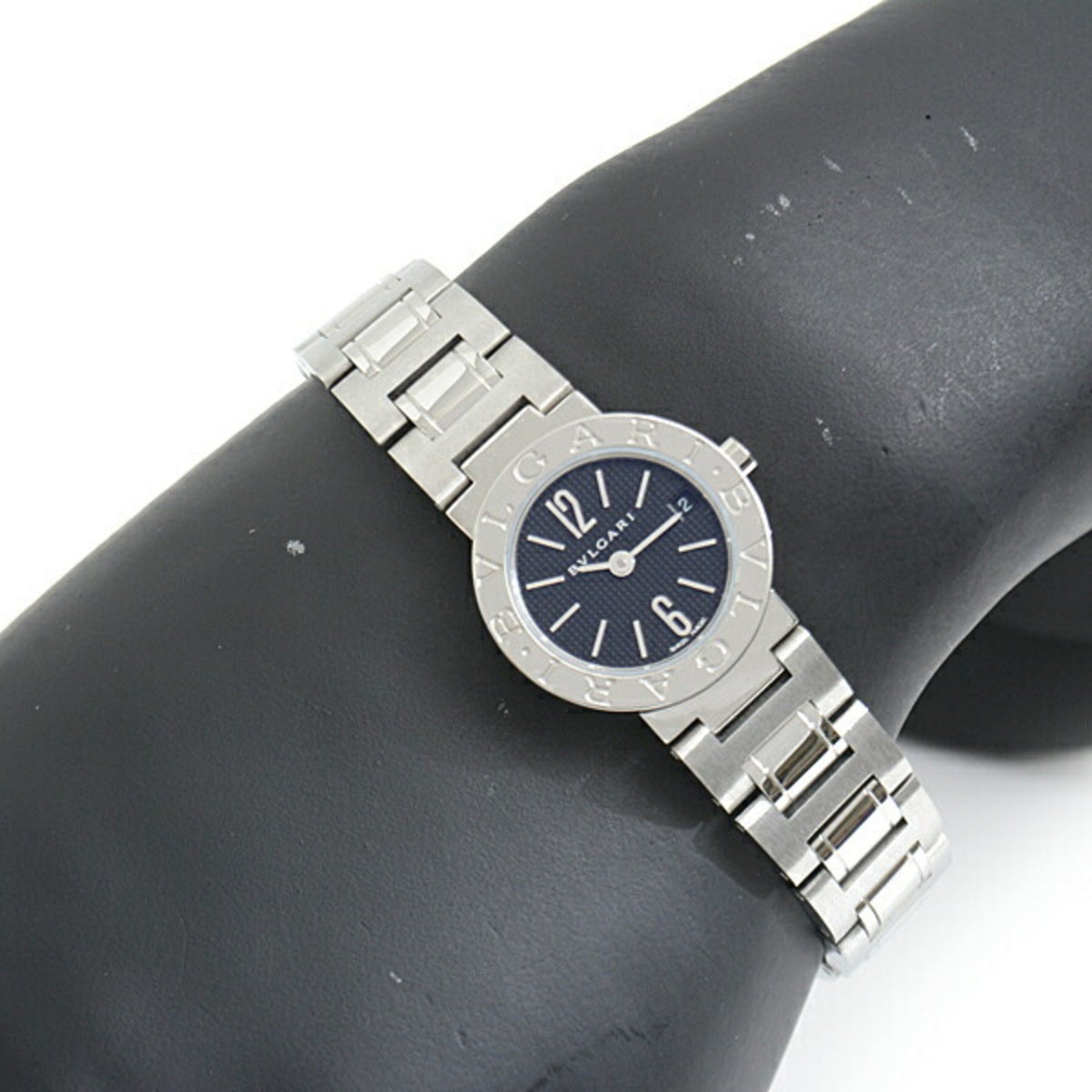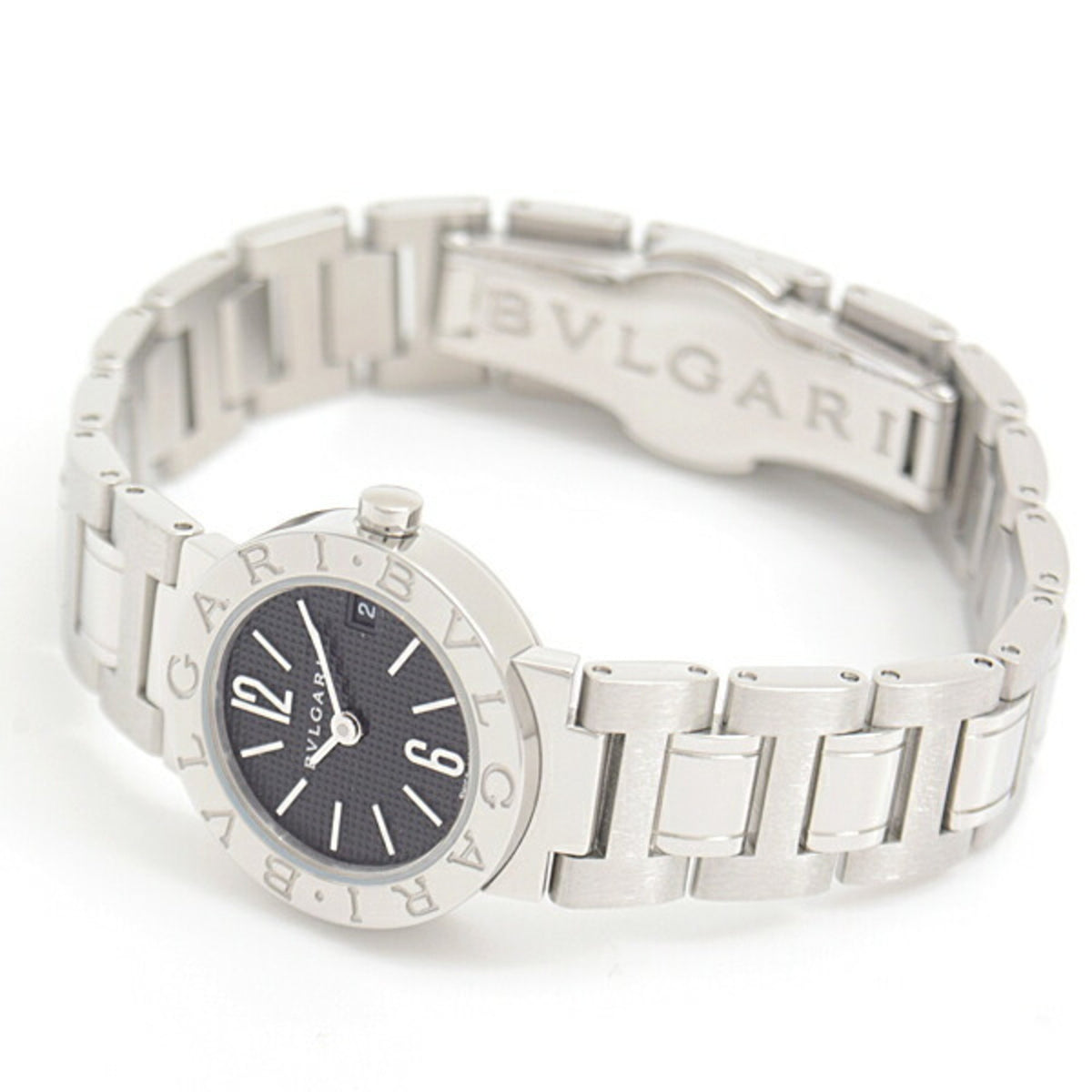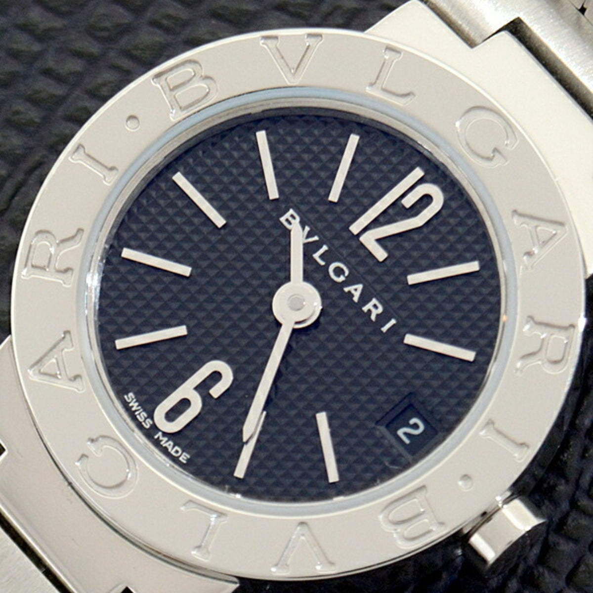 Gebrauchte BVLGARI Damenuhr, batteriebetrieben, schwarzes Zifferblatt, SS, Edelstahl, BB23SS