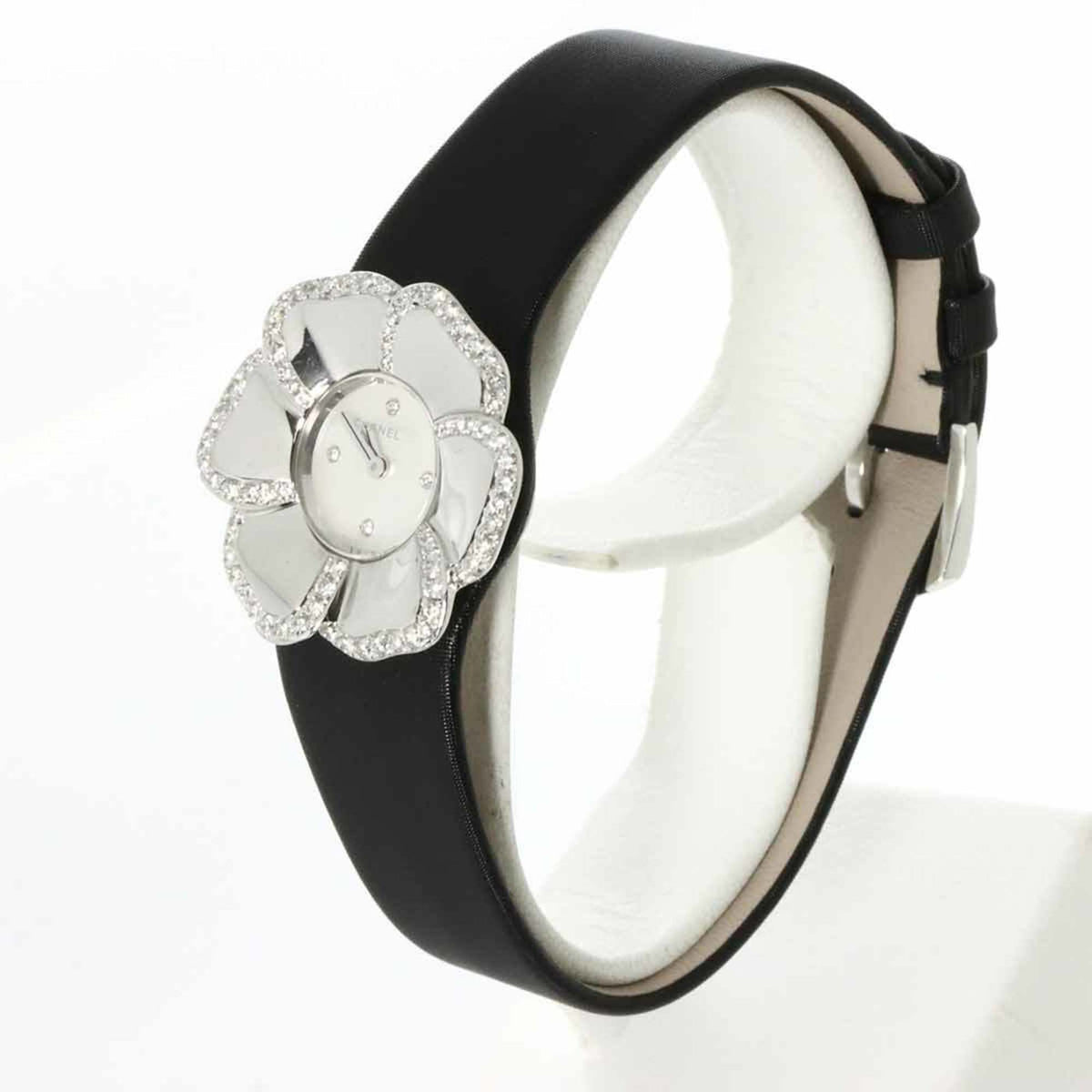 Pre-Owned CHANEL Camellia H1187 Women's Diamond Bezel Watch with 4 Diamonds, White Shell, and 18K Gold Quartz Movement