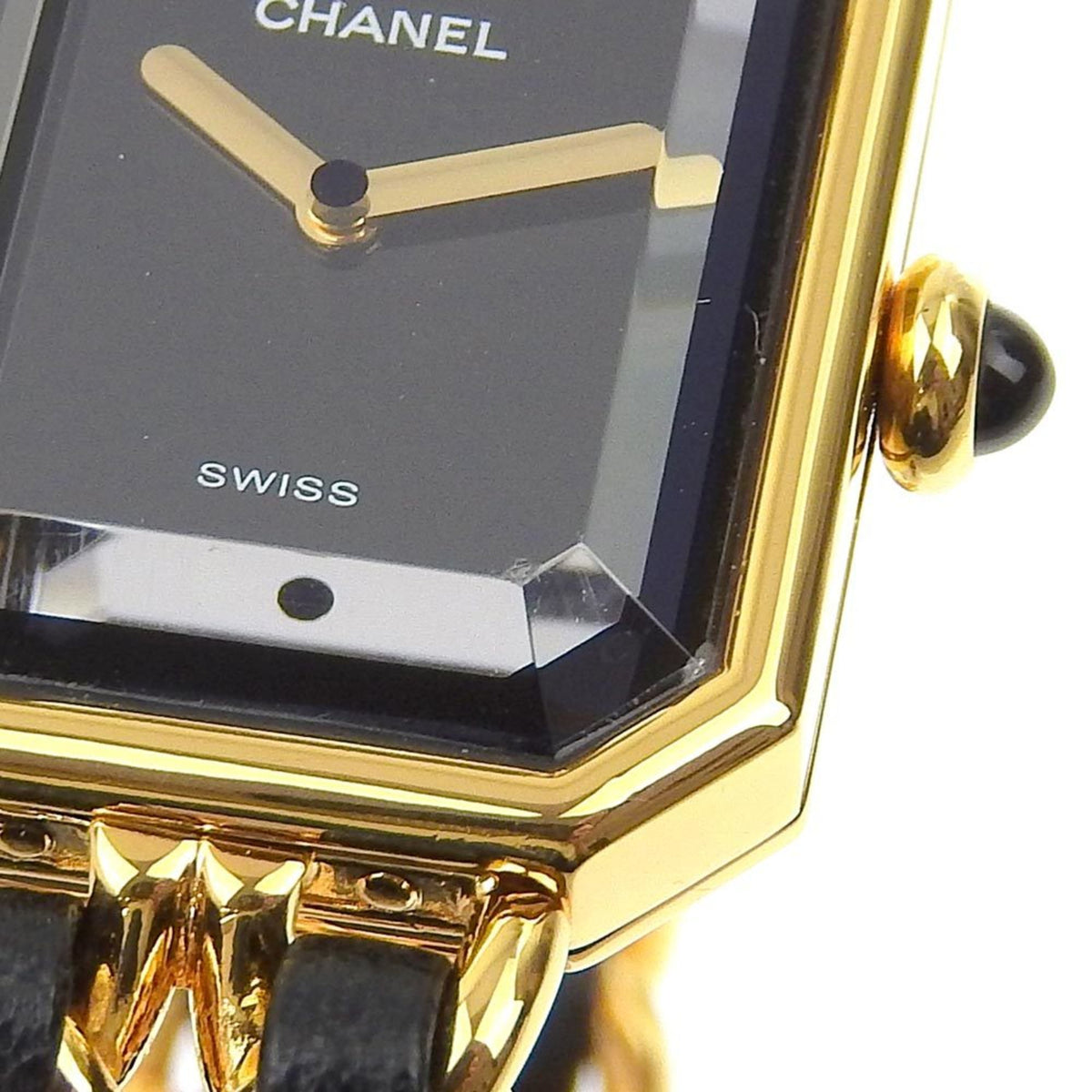 Gebrauchte Chanel CHANEL Premiere S Uhr H0001 vergoldet x Leder Quarz Analoganzeige schwarzes Zifferblatt Damen