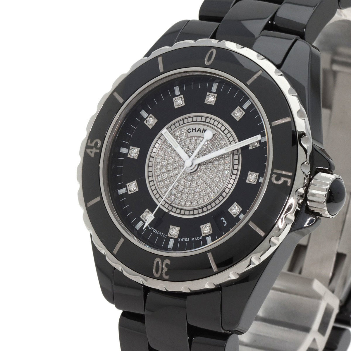 Gebrauchte Chanel H1757 J12 38mm 12P Center Diamond Armbanduhr Keramik Herren CHANEL