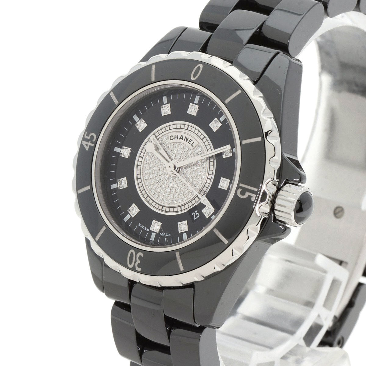 Pre-Owned CHANEL H2122 J12 33mm Center Diamond Ceramic/Ceramic Women's Watch