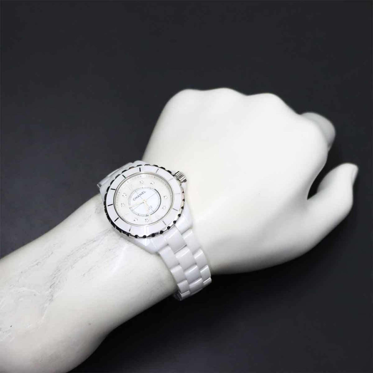 Pre-Owned CHANEL J12 38mm H3214 Men's Watch with 8 Diamonds, White Shell, Ceramic, and Quartz Movement