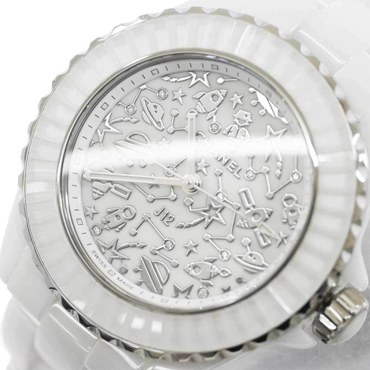 Gebrauchte CHANEL J12 Cosmic H7990 Diamant Damenuhr Weiße Keramik Quarz