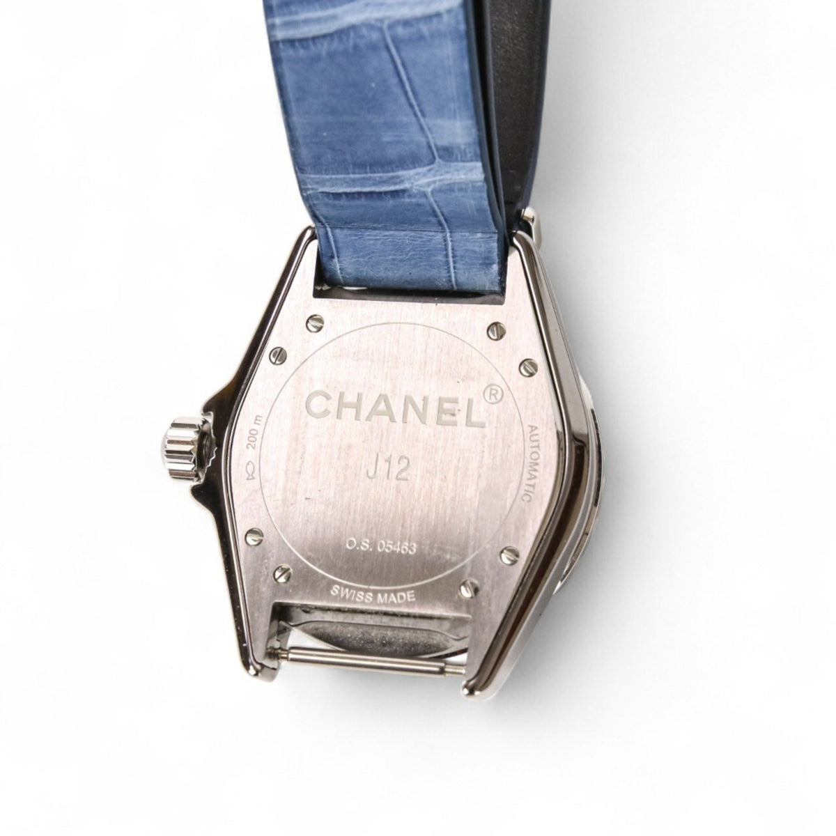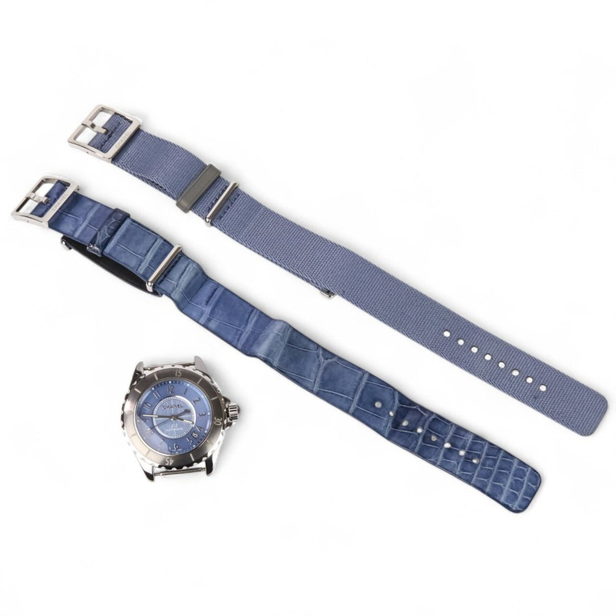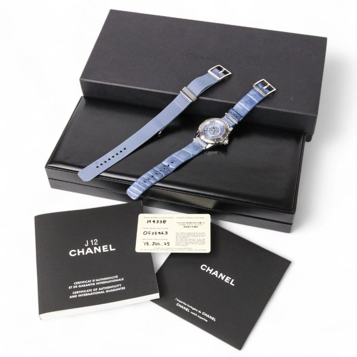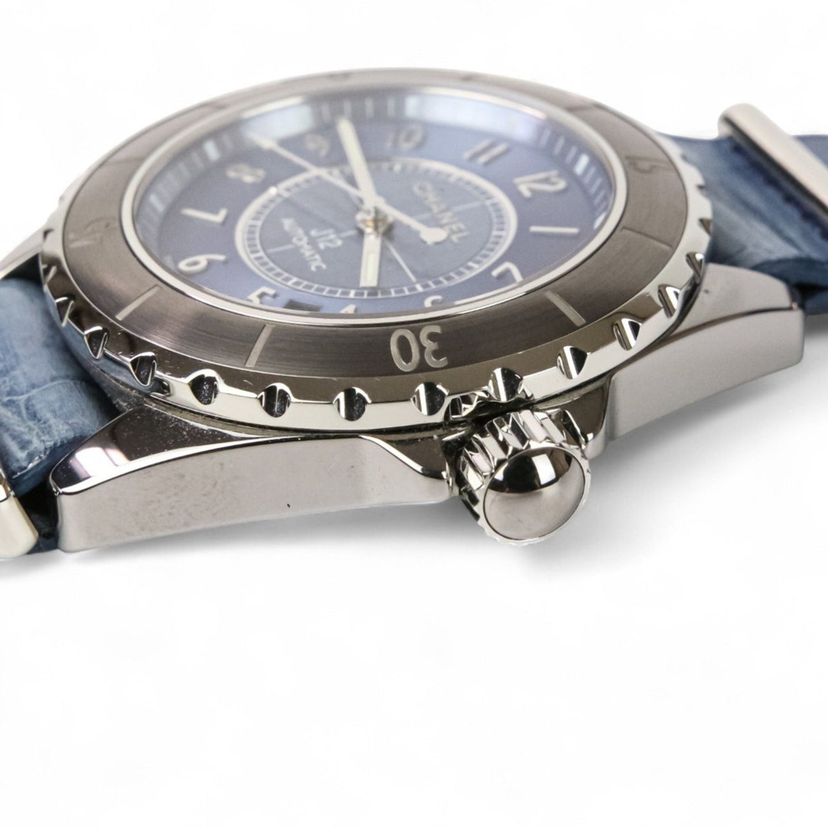 Gebrauchte CHANEL J12 G.10 Titan Keramik 38mm Automatikuhr H4338 Blau Metallic Silber Farbe Herren