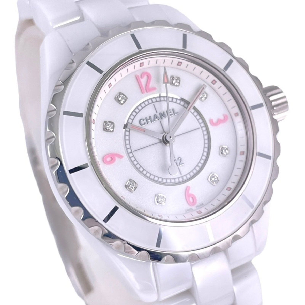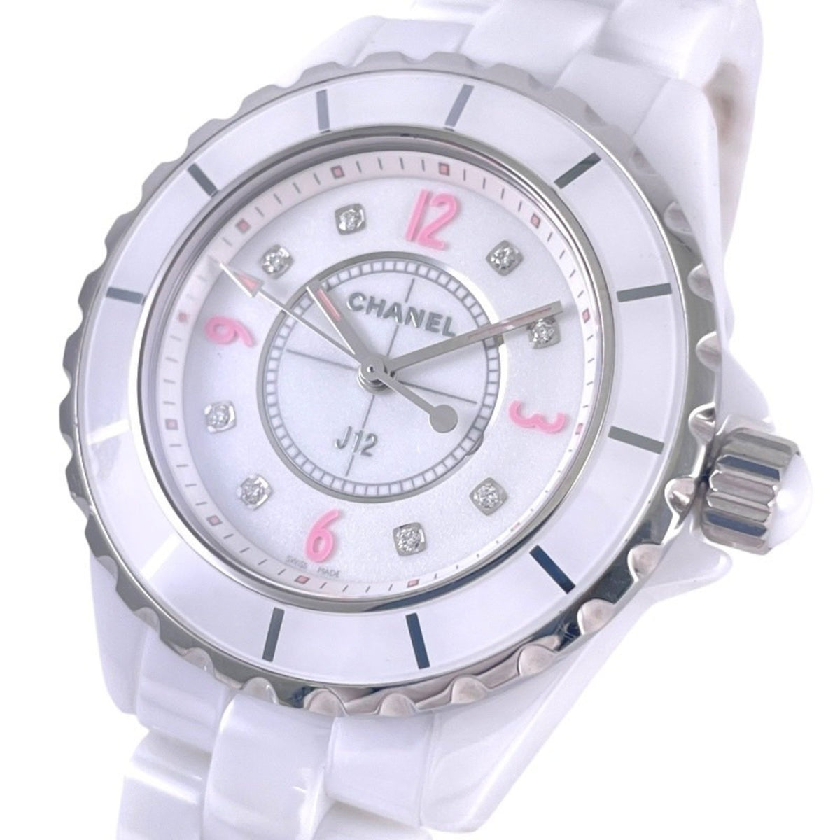 Pre-Owned CHANEL J12 H4863 Women's Watch, White Ceramic, Pink Light, Limited Edition of 1,200 Pieces, 8 Diamonds