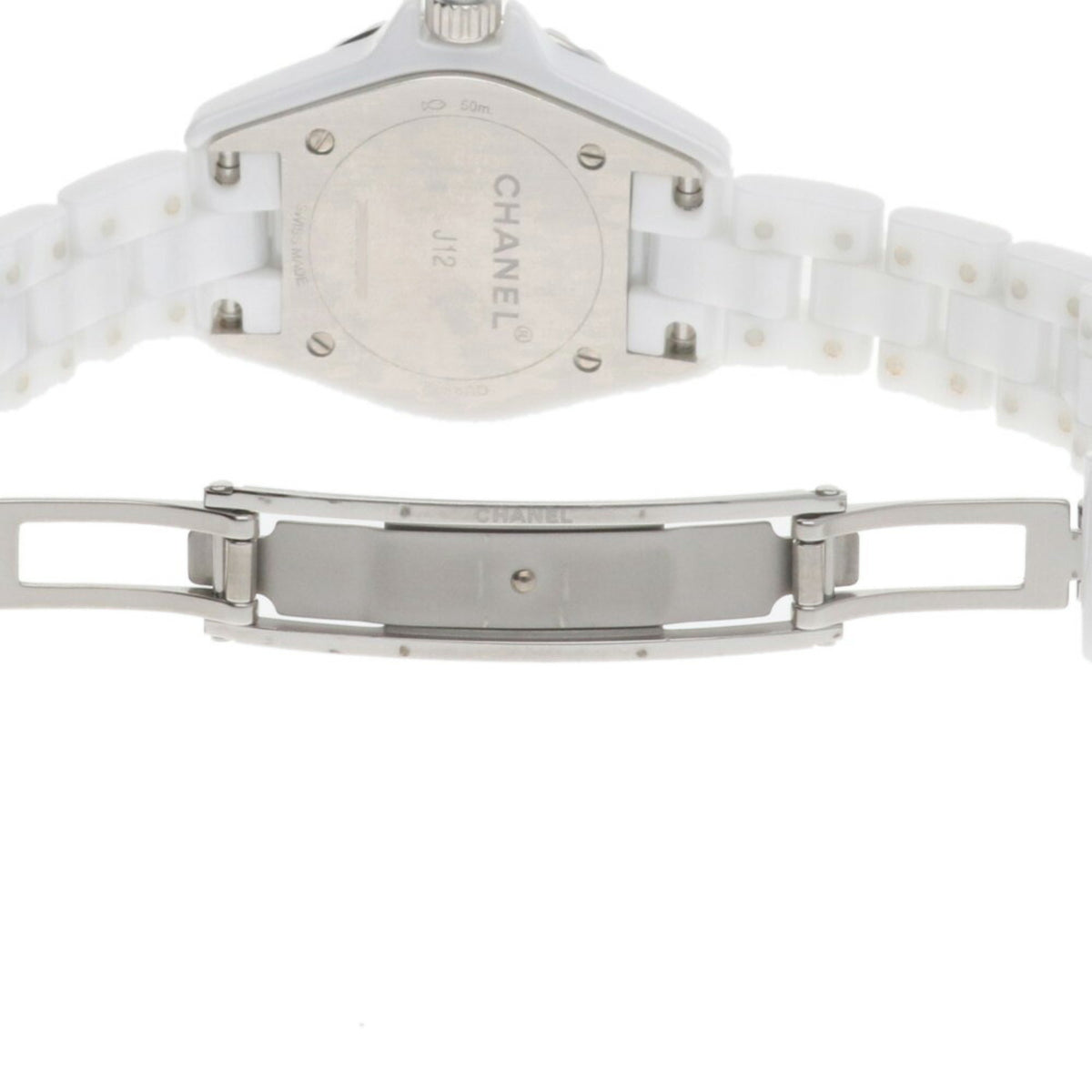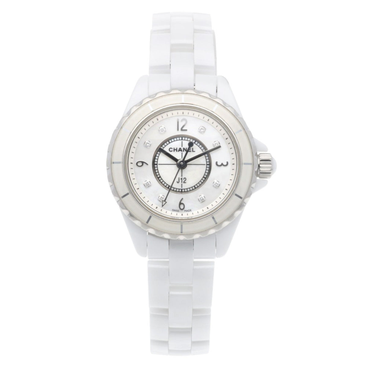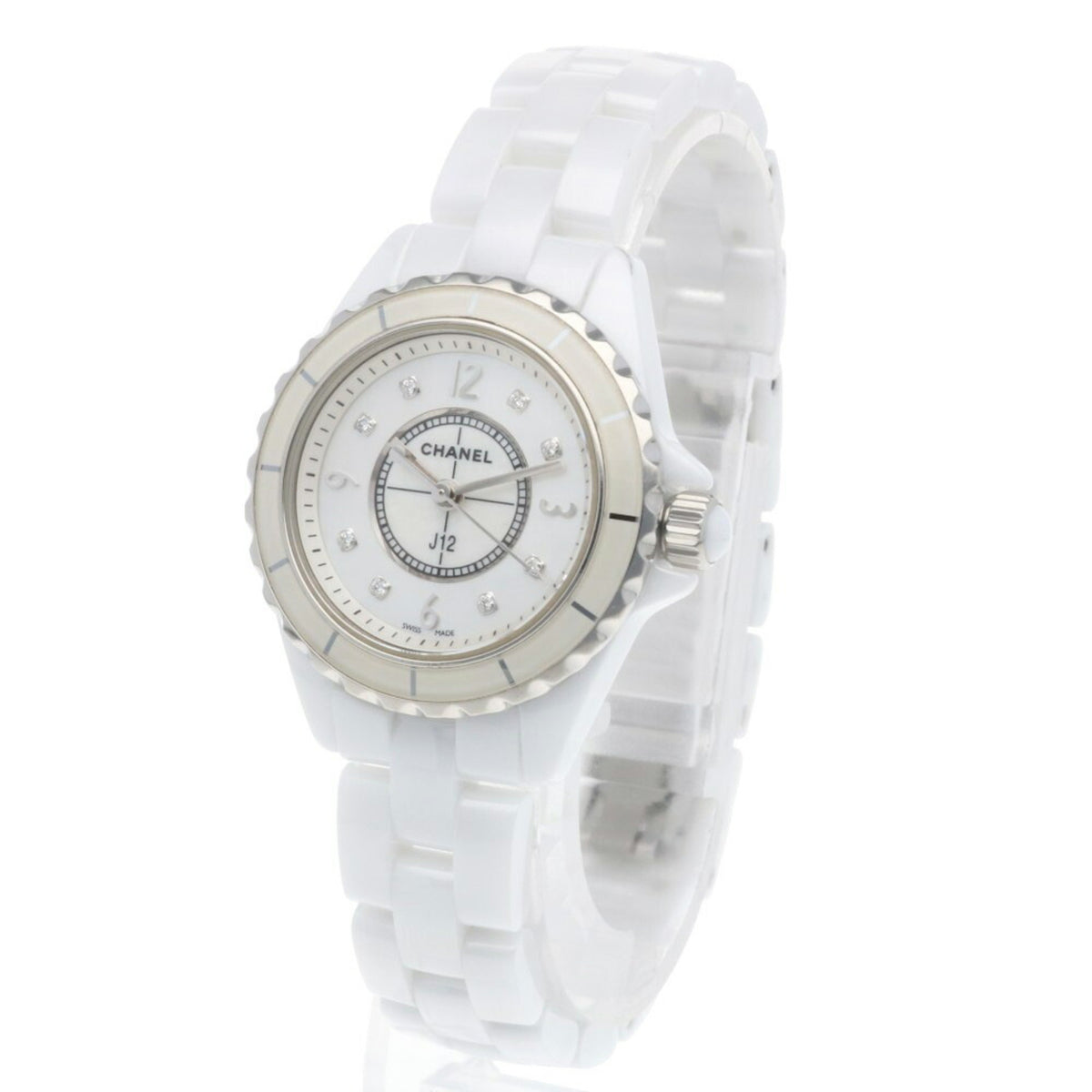 Gebrauchte Chanel J12 Uhr, weiße Keramik H2570 Quarz, Damen, CHANEL, 8P Diamant, Muschelzifferblatt