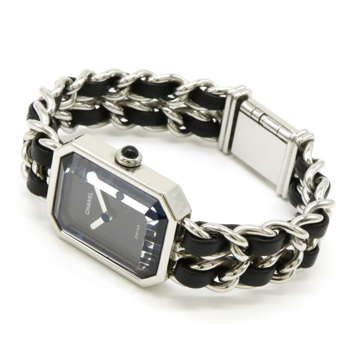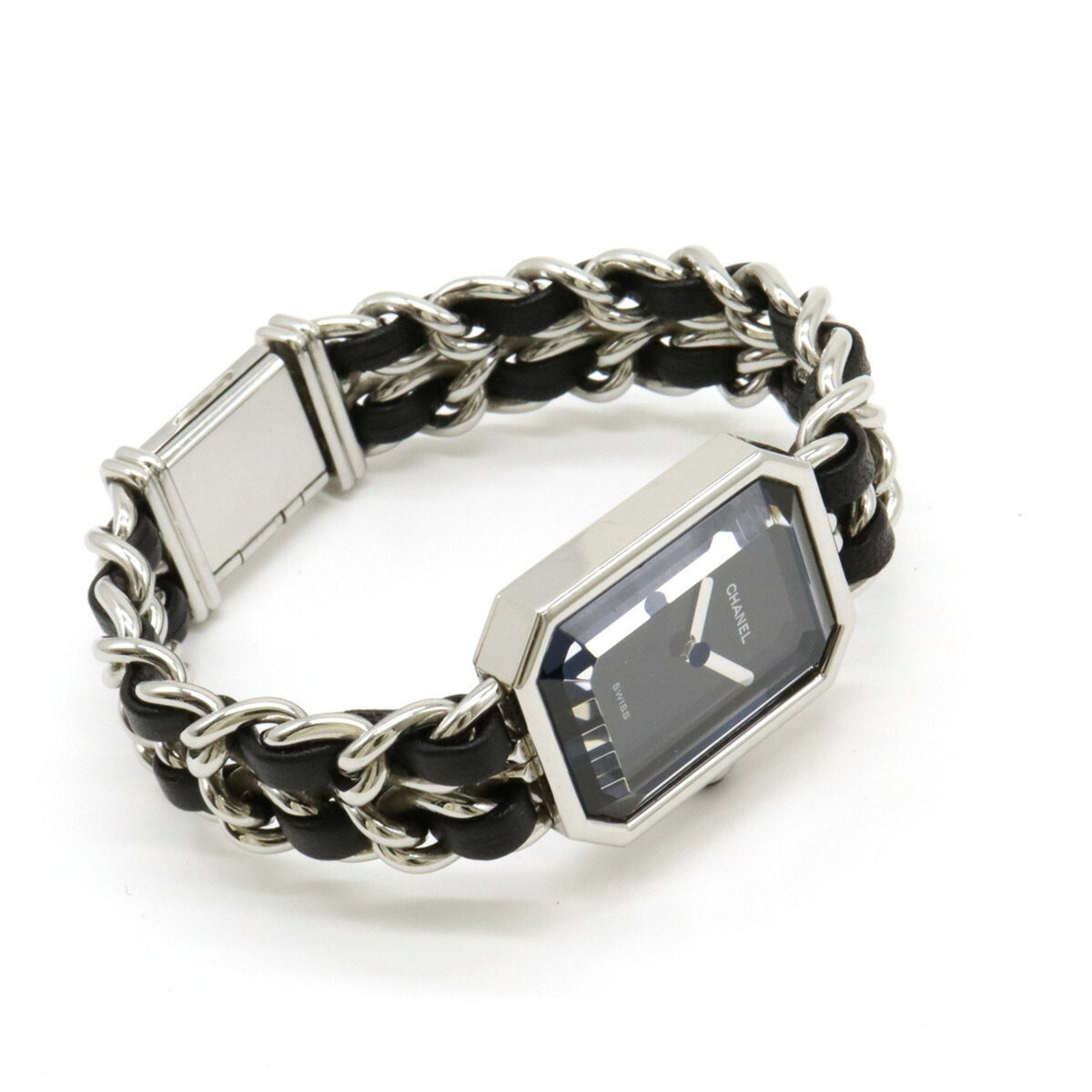 Gebrauchte CHANEL Premiere Damenuhr mit schwarzem Zifferblatt, Größe S, Edelstahl, Leder, H0451