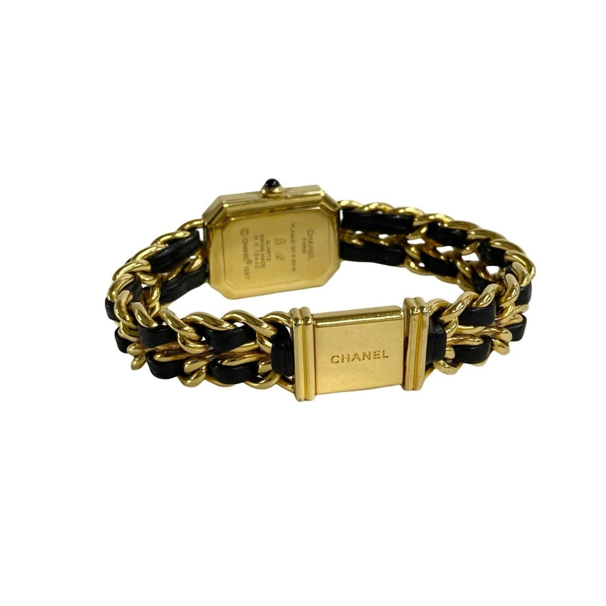 Pre-Owned CHANEL Premiere L Quartz Stainless Steel Leather Watch for Women, Gold and Black, 26575