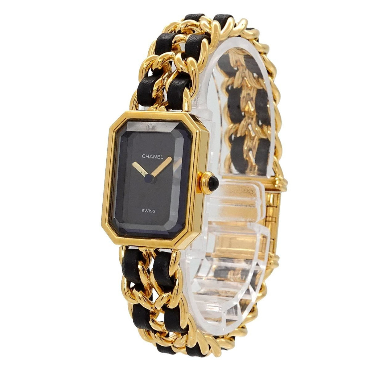 Gebrauchte CHANEL Premiere L Größe H0001 Damenuhr Schwarz Gold Quarz
