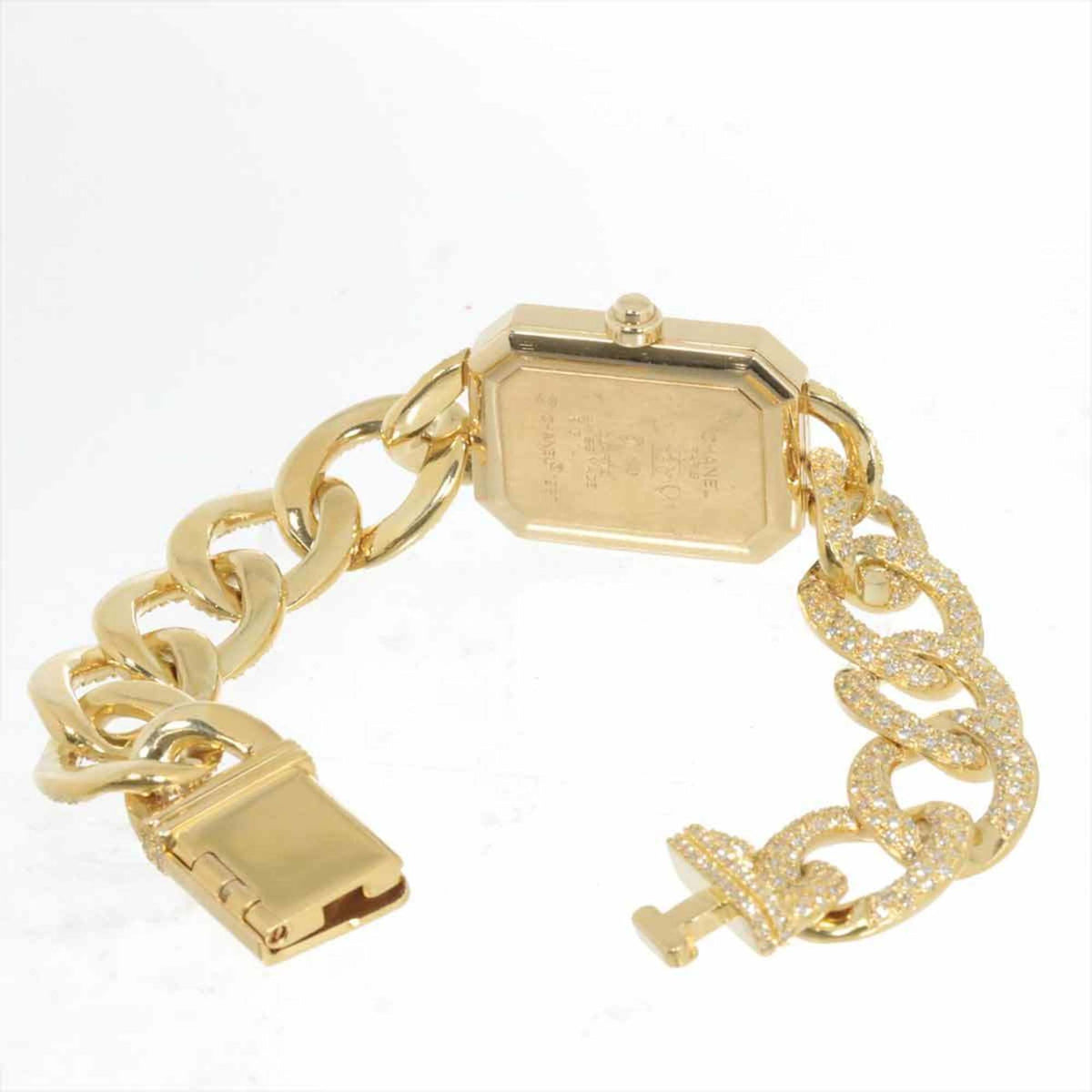Gebrauchte CHANEL Premiere L Größe H0114 Echte Diamant Damenuhr schwarz K18YG Gelbgold massiv Quarz