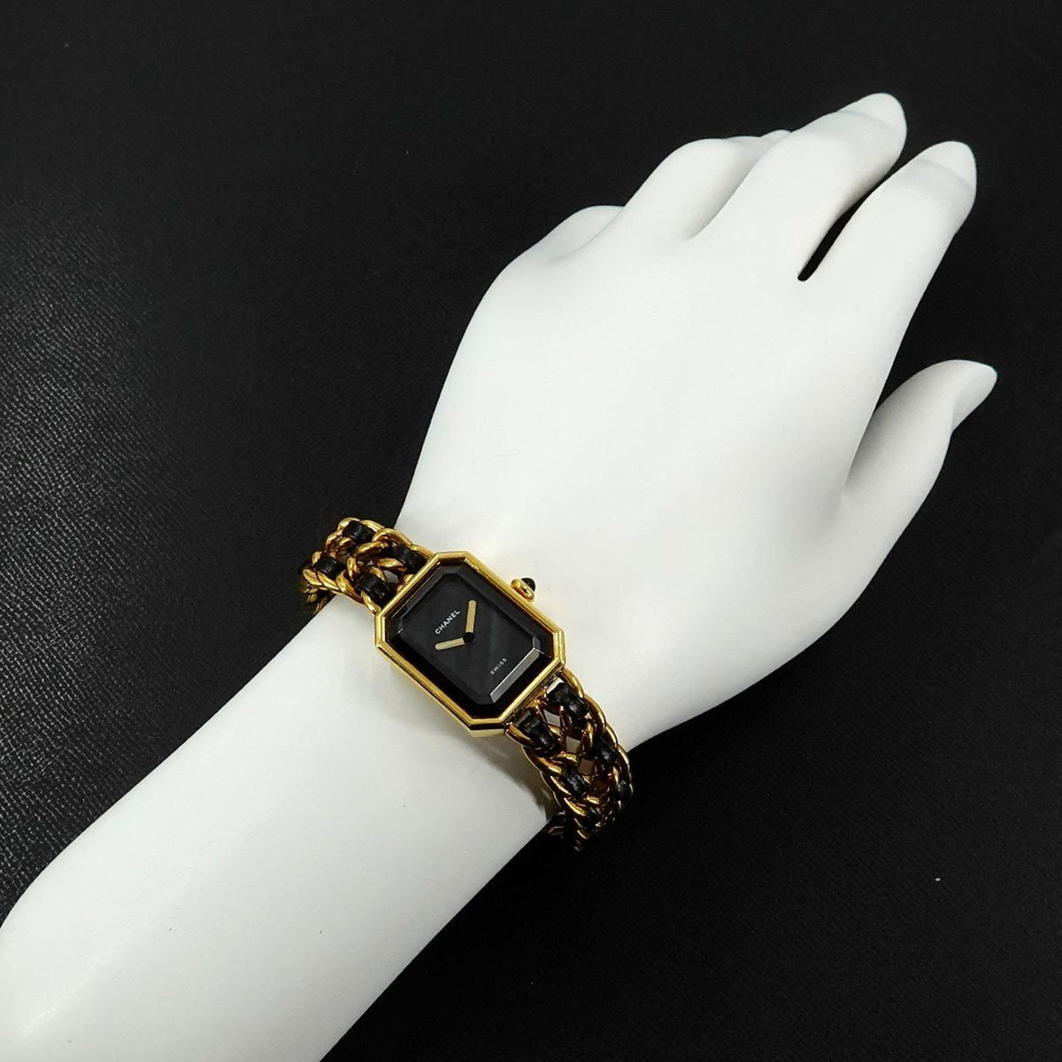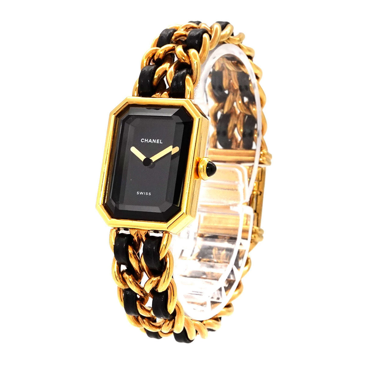 Gebrauchte CHANEL Premiere M Größe H0001 Damenuhr Schwarz Gold Quarz