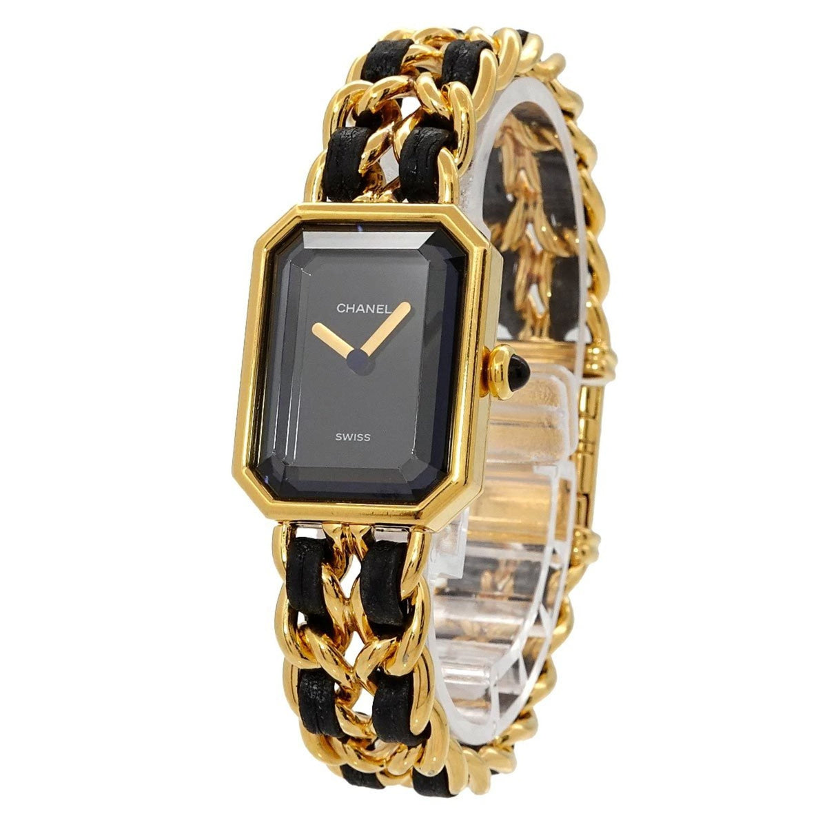 Gebrauchte CHANEL Premiere M Größe H0001 Damenuhr Schwarz Gold Quarz