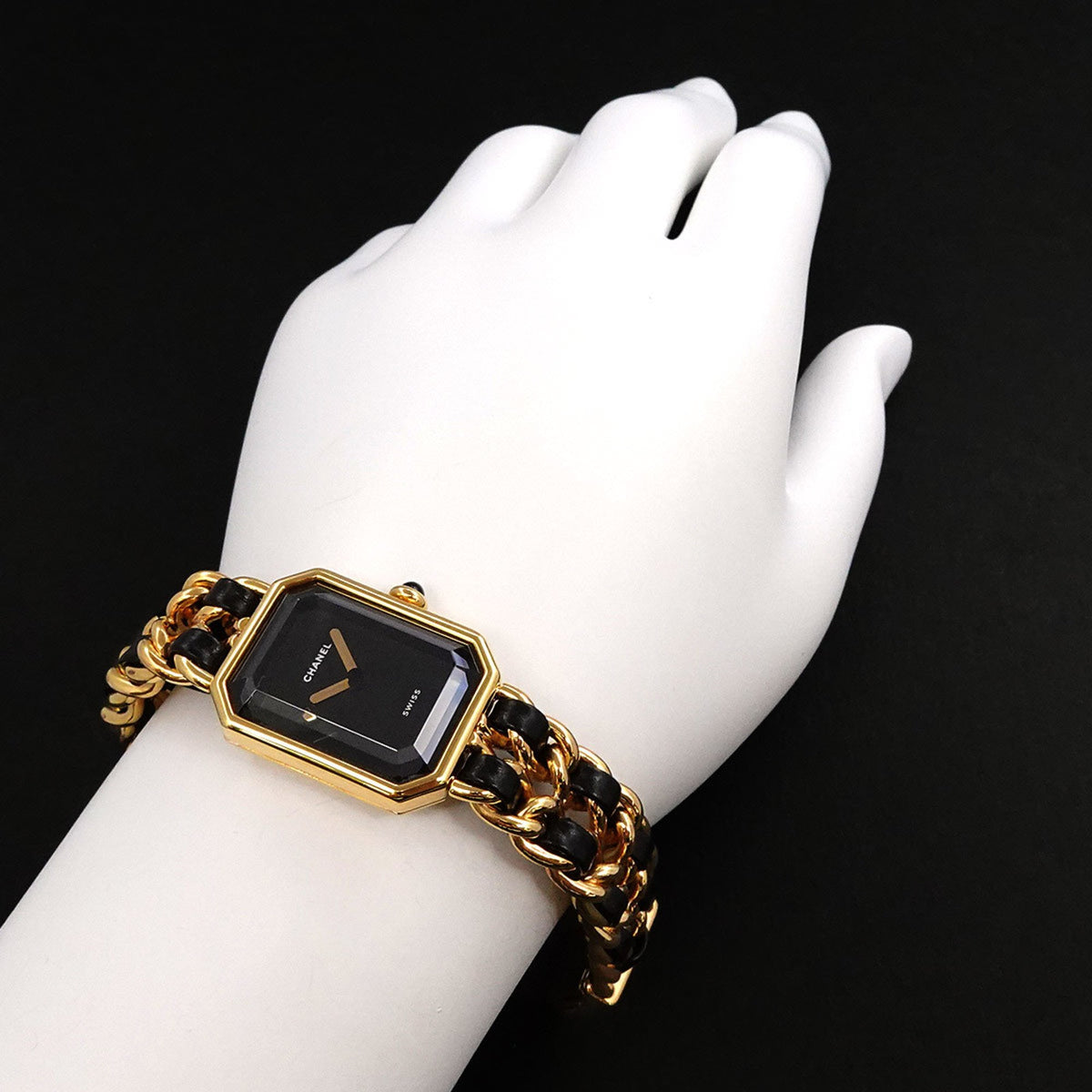 Gebrauchte CHANEL Premiere S Größe H0001 Damenuhr Schwarz Gold Quarz