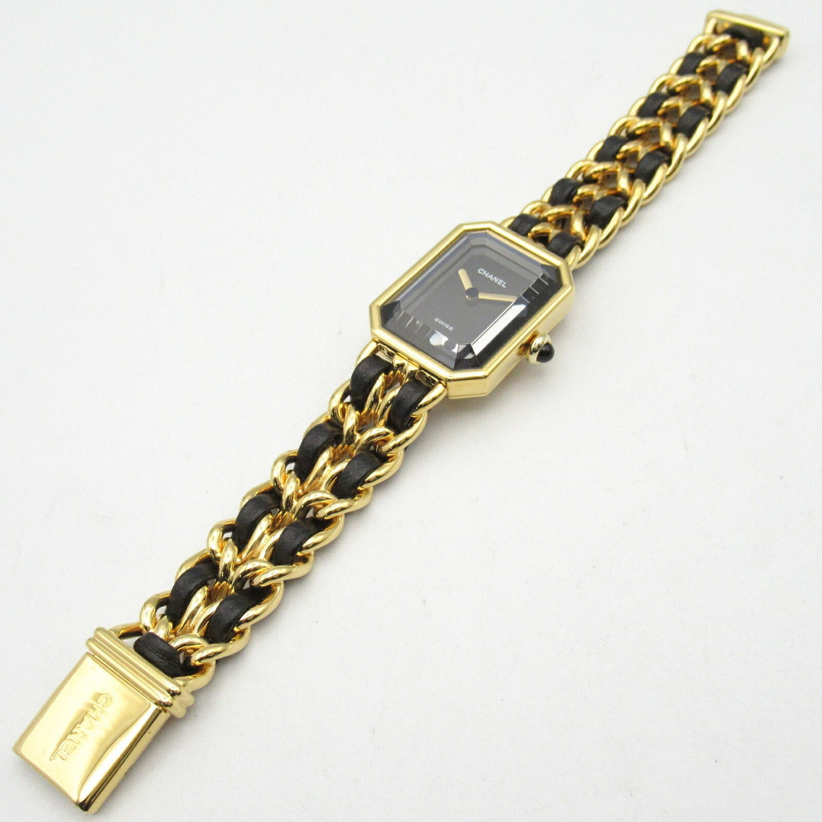 Gebrauchte CHANEL Premiere S Uhr GP (vergoldet) Leder Damen Schwarz H0001
