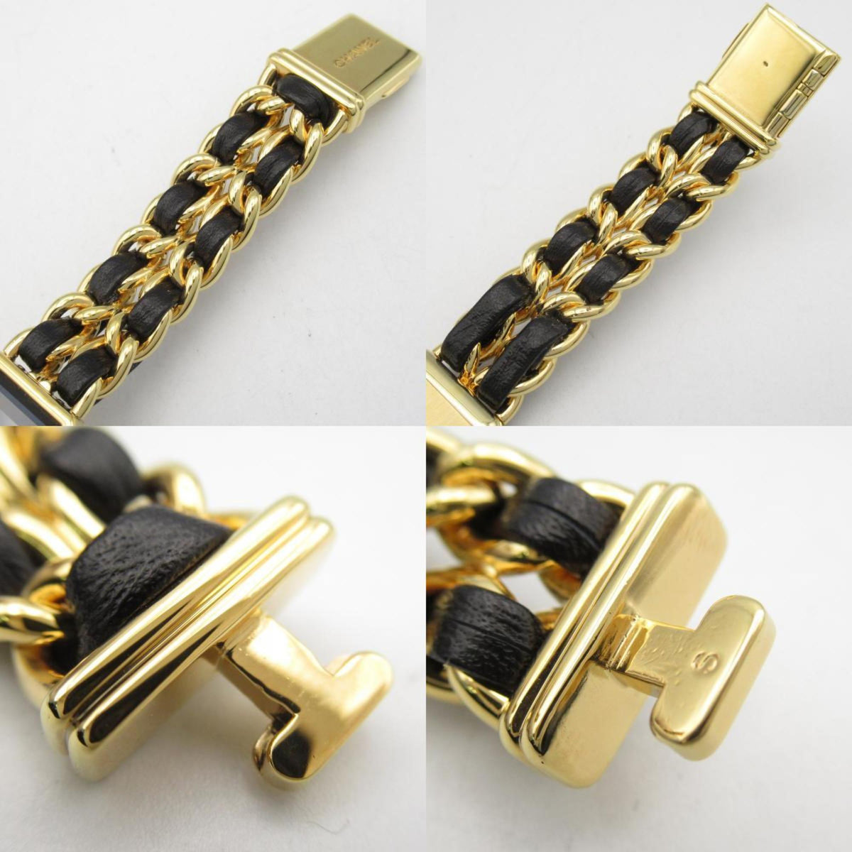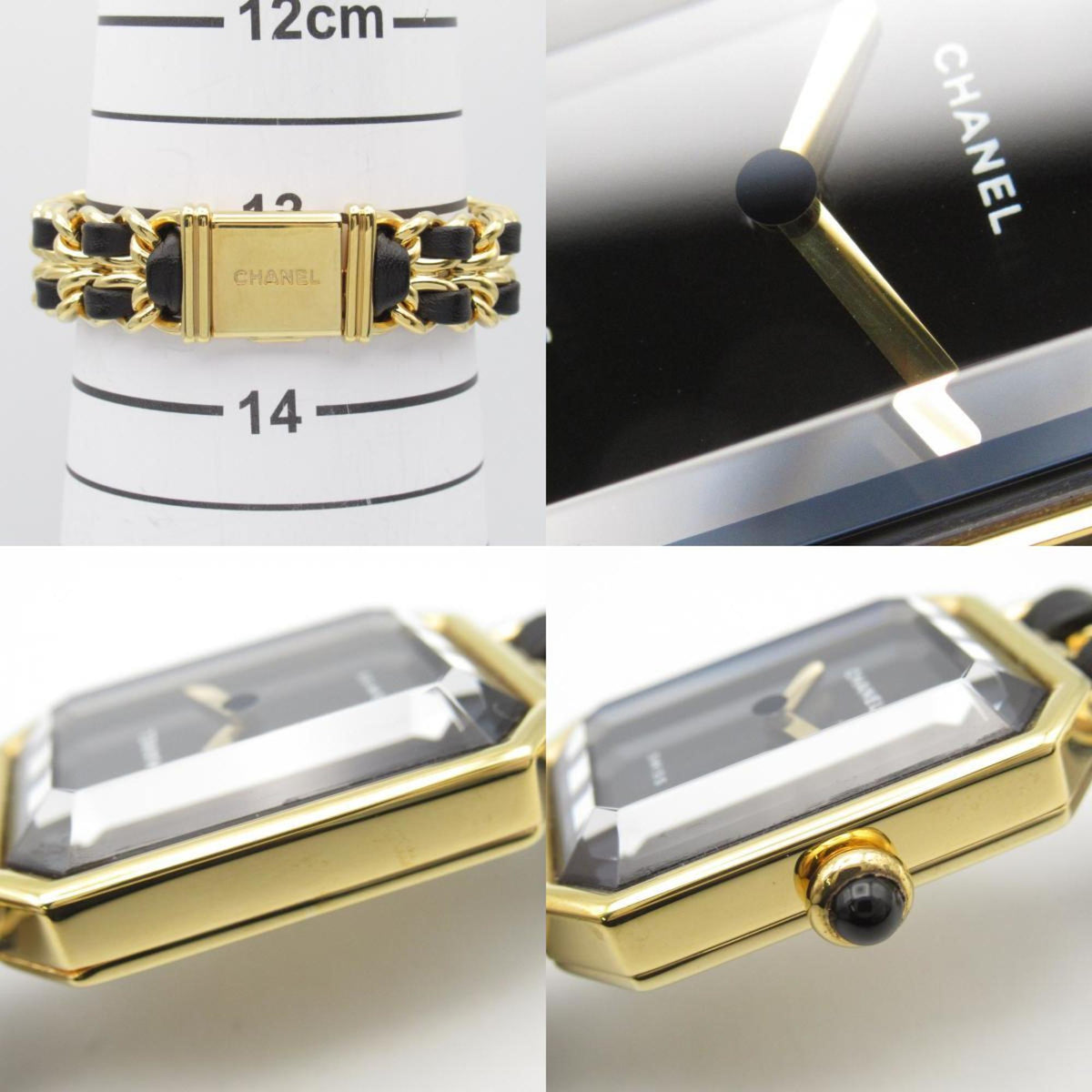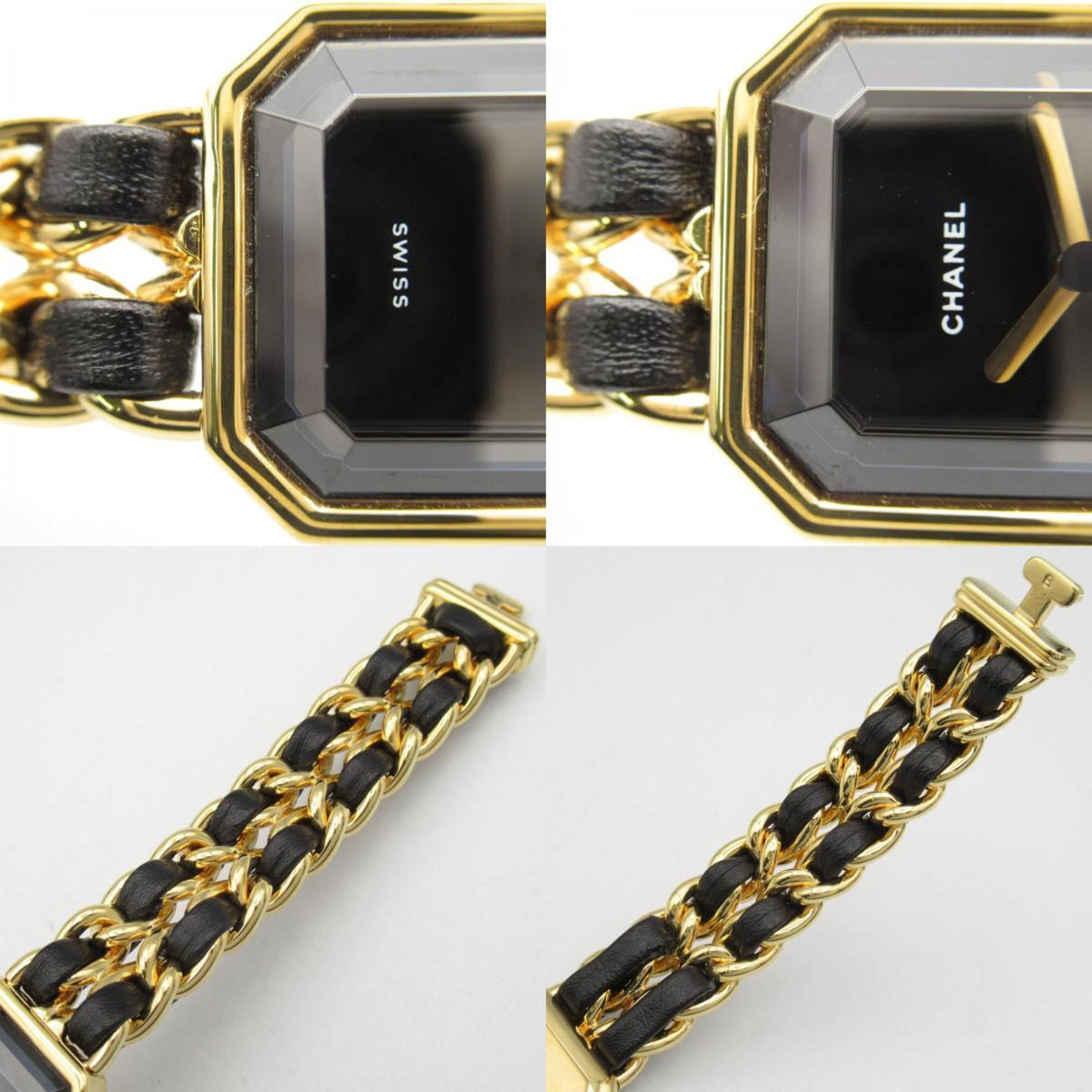 Gebrauchte CHANEL Premiere S Uhr GP (vergoldet) Leder Damen Schwarz H0001